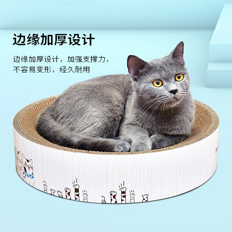 得酷【赠猫薄荷】猫抓板 纸壳猫窝碗型 瓦楞纸猫碗 圆形猫咪磨爪玩具 耐磨不掉屑猫咪磨爪器 椭圆猫窝 外径35CM适合5斤内猫咪