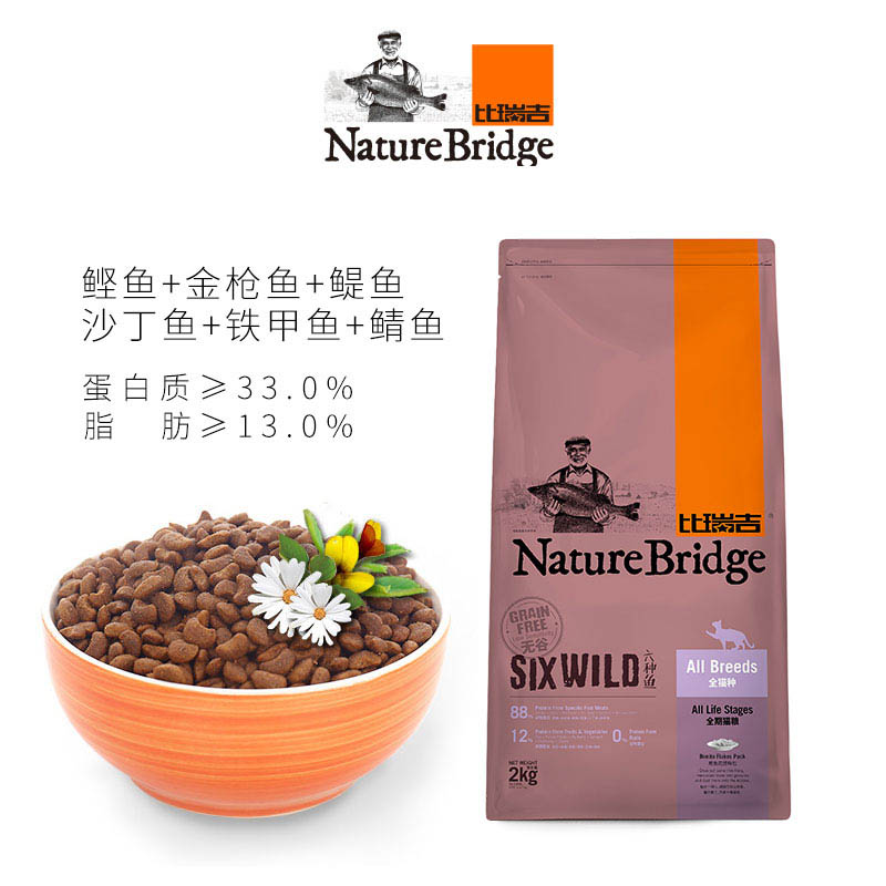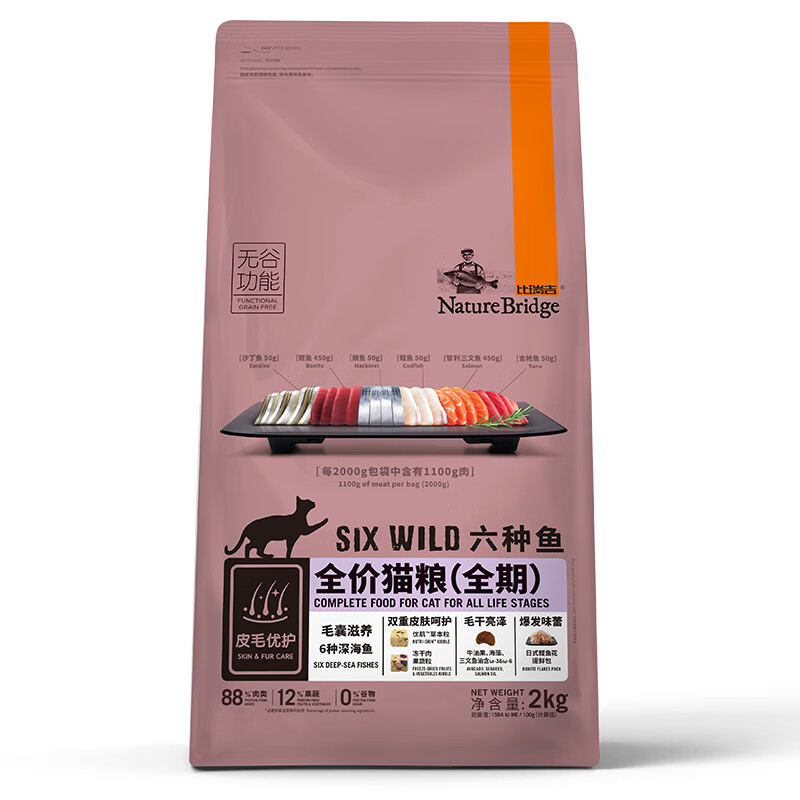 比瑞吉【钜划算】无谷六种鱼猫粮2kg猫粮 成猫幼猫全猫种全期天然宠物猫 然宠物猫食