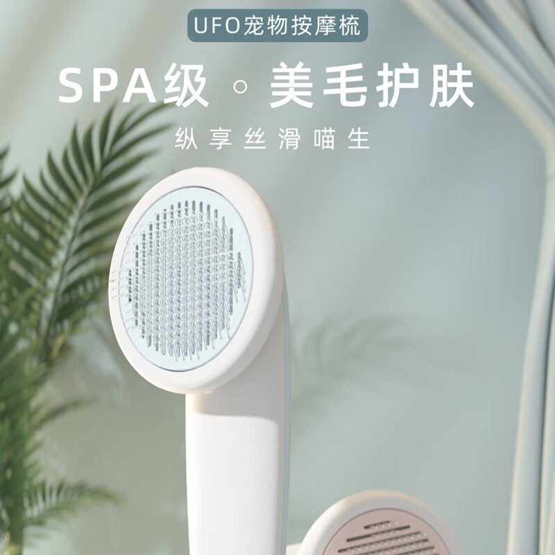 贝尼熊 除毛刷猫梳子狗吸毛美容清洁用品猫咪梳毛不锈钢脱毛 UFO自洁梳 UFO-银河灰