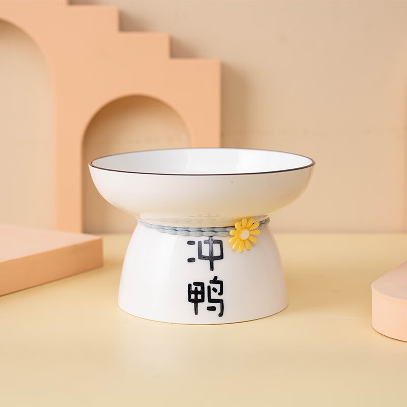 烁坭高脚猫碗陶瓷防打翻饭斜口碗猫咪食盆喝水保护颈椎饮水宠物狗粮碗 平口冲鸭