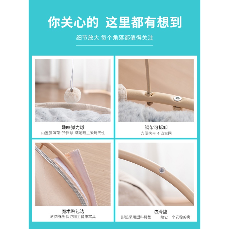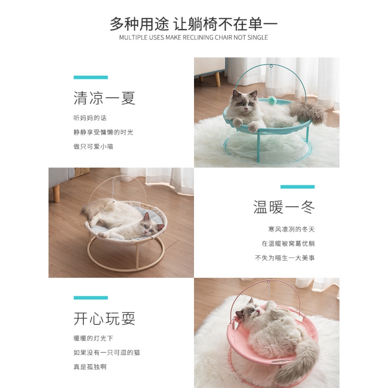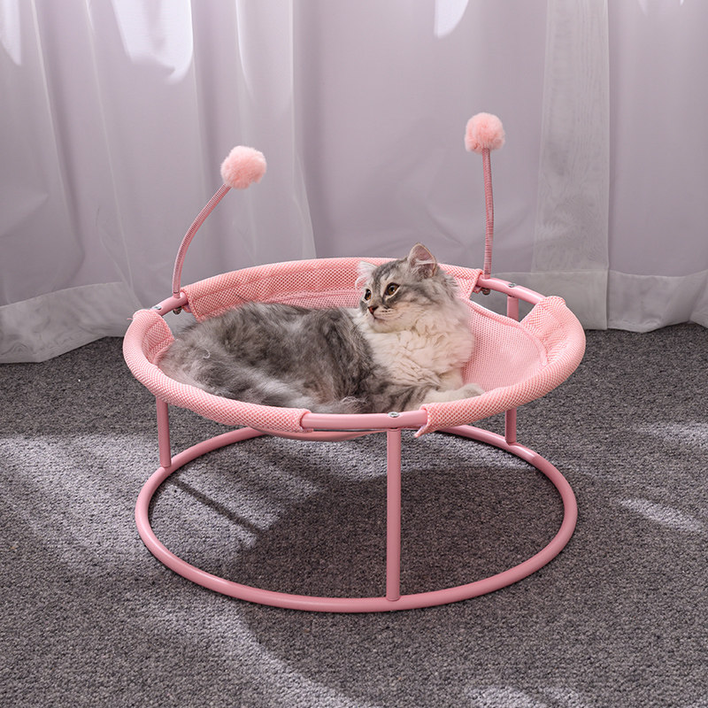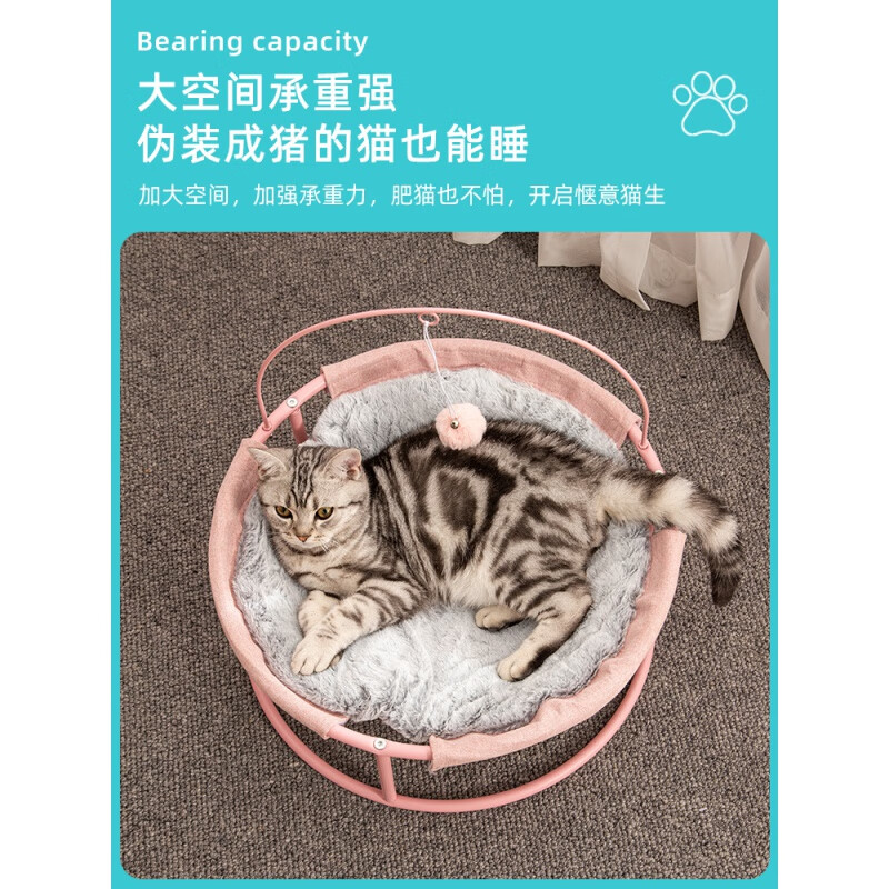 珊野 猫窝猫摇篮椅夏天凉窝深度睡眠猫吊床躺椅床猫床四季通用猫咪用品 夏季趣味毛毛虫躺椅*玫瑰粉 适用于20斤内猫咪狗狗