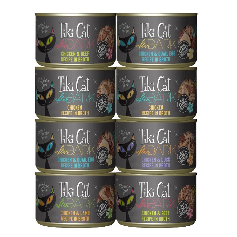 Tiki Cat主食猫罐156g肠胃调理宠物罐头进口全阶段鸡肉营养 黑夜传说156g混合8罐(鸡鸭牛)