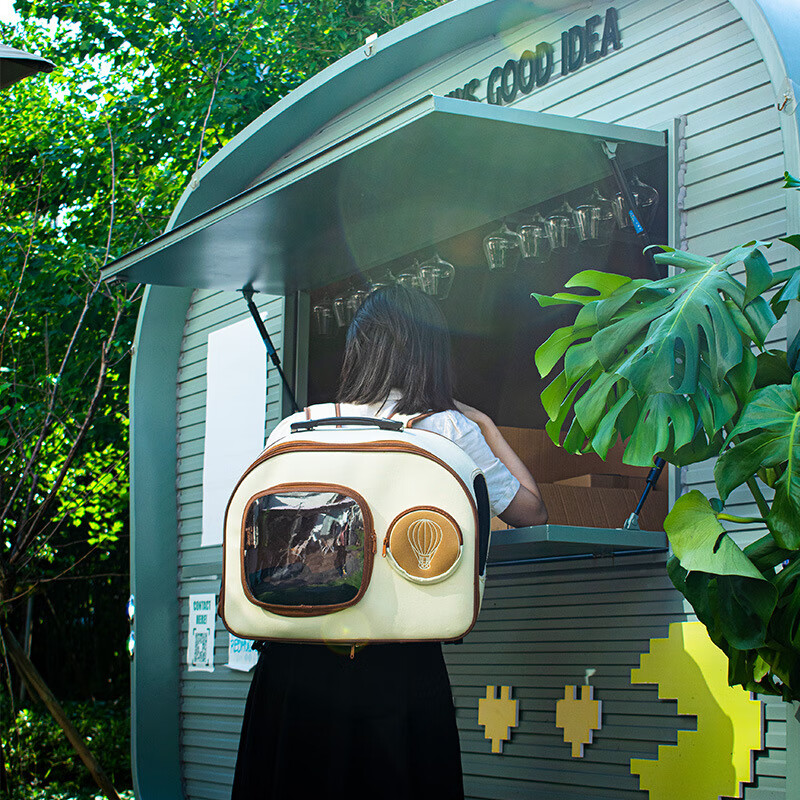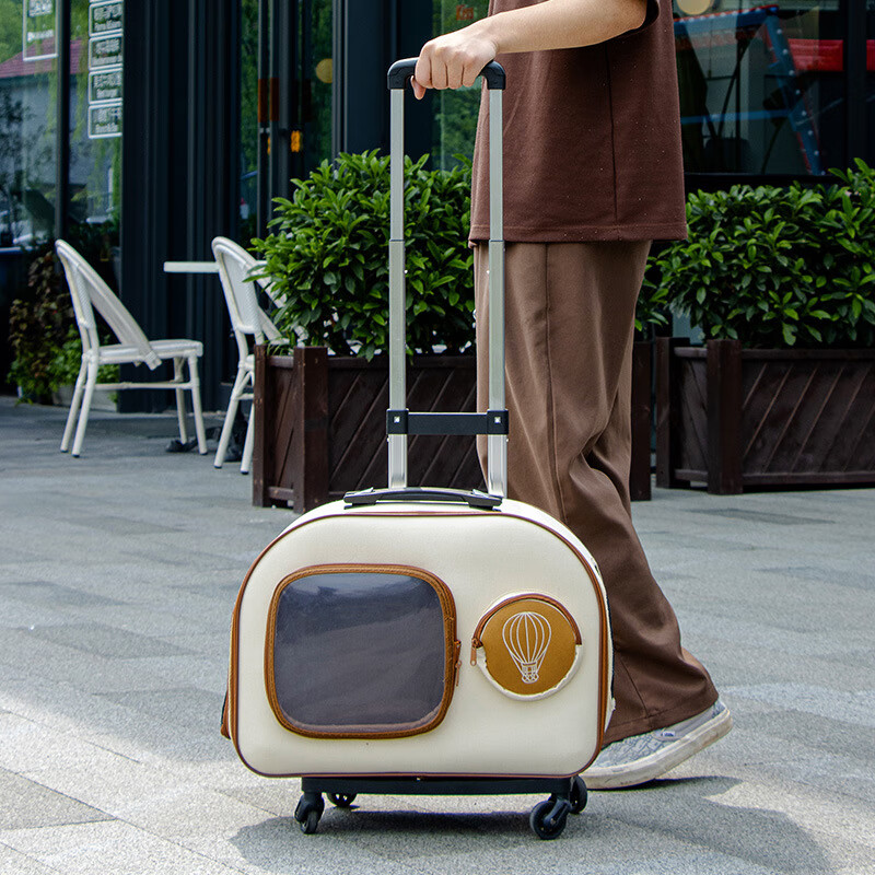 喵乎汪也猫咪外出拉杆箱透气出行推车双肩包大容量成猫幼猫便捷手提箱猫包 米色拉杆包