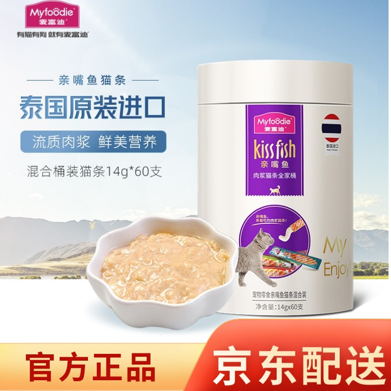 麦富迪(MYFOODIE)麦富迪猫条猫零食磨牙洁齿小鱼饼干成猫幼猫营养猫湿粮 混合装丨840g