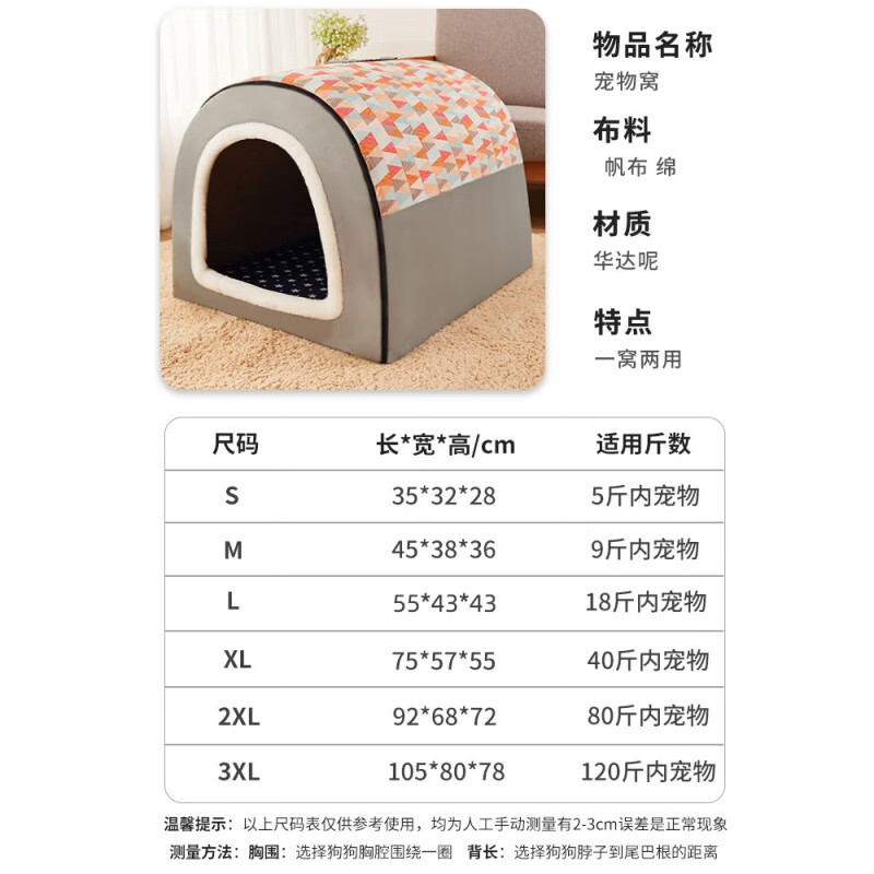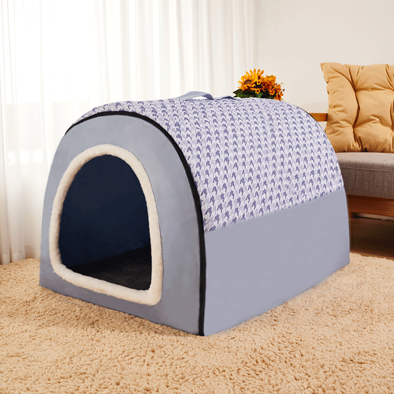 笼趣狗窝冬季保暖大型犬房子型宠物可拆洗沙发床四季通用金毛中型狗屋 2022新款千鸟格-蓝色 垫子 M四季通用建议11斤内