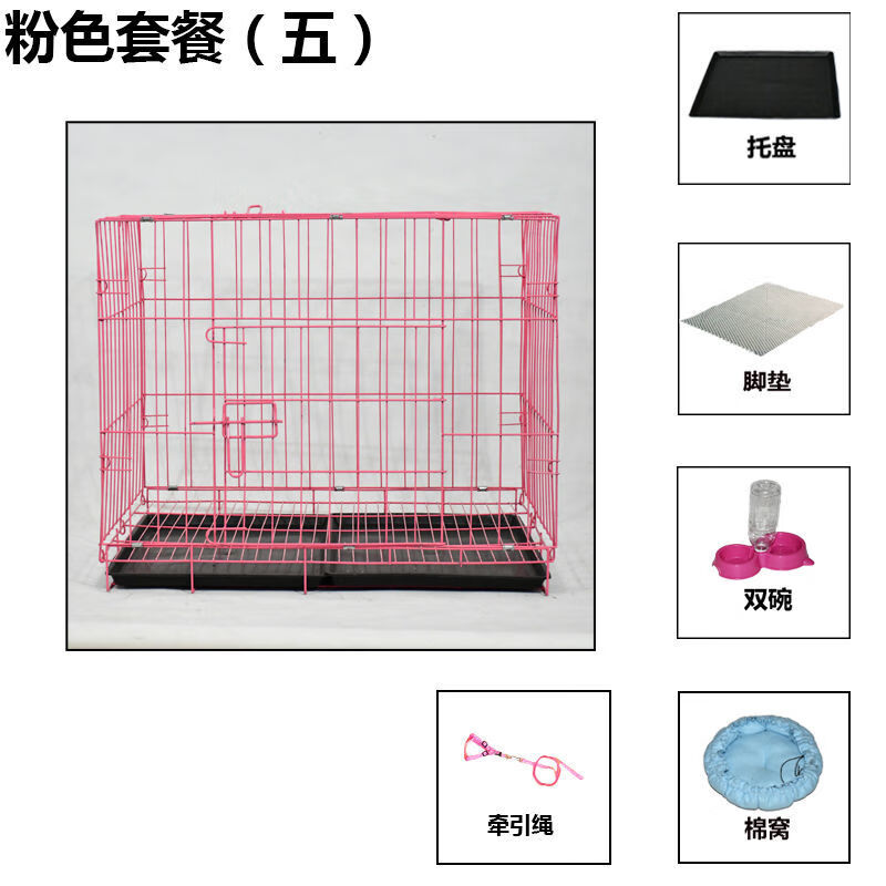 HKNA 狗笼子小型犬中型犬泰迪比熊室内带厕所猫笼兔笼宠物折叠笼子 带托盘 脚垫 双碗 棉窝 牵引链 20斤以内70*50*60cm银色