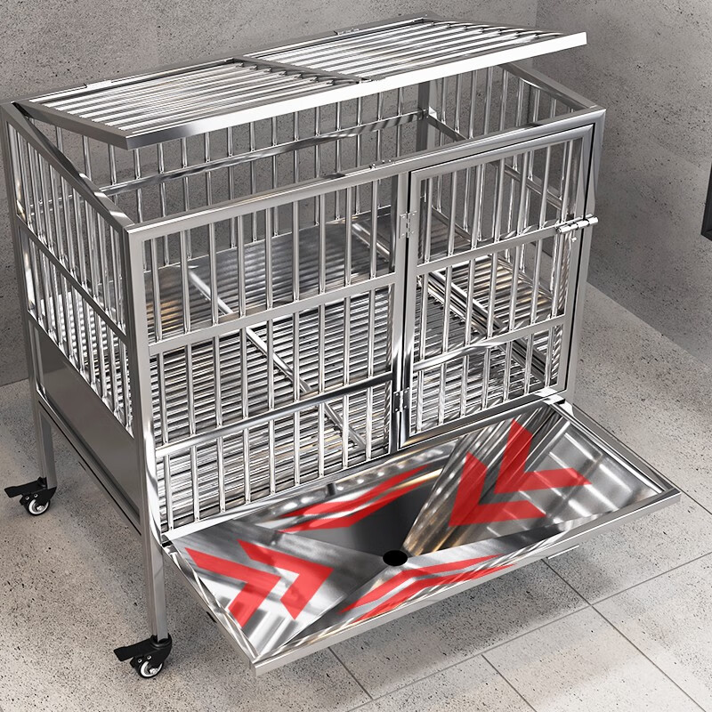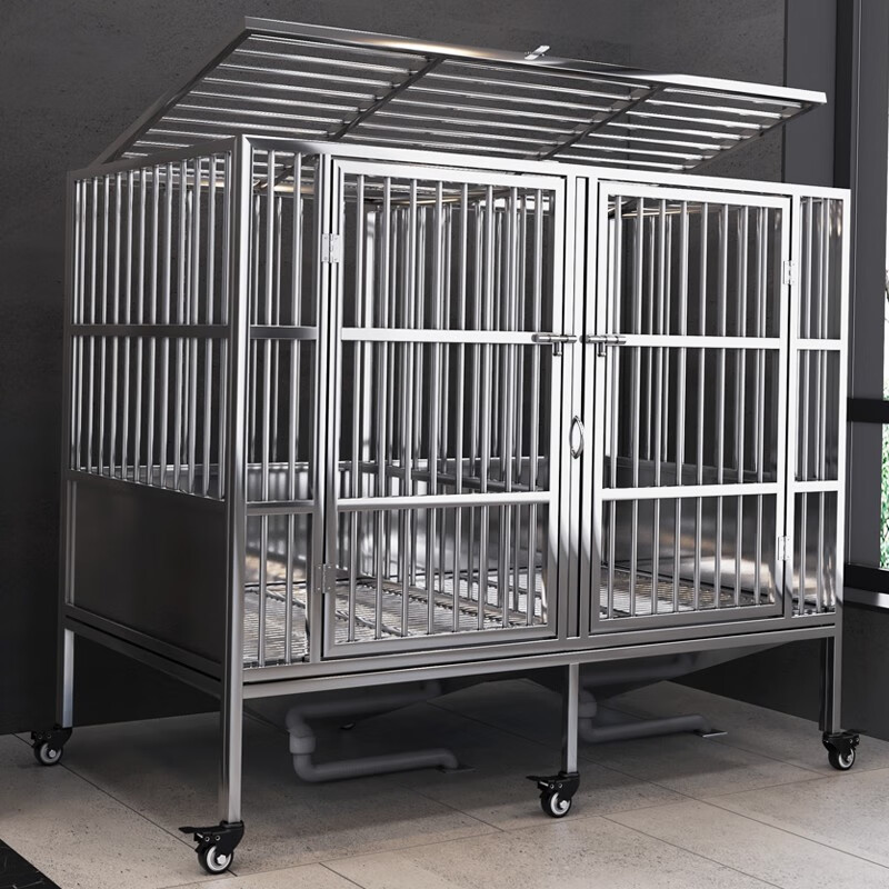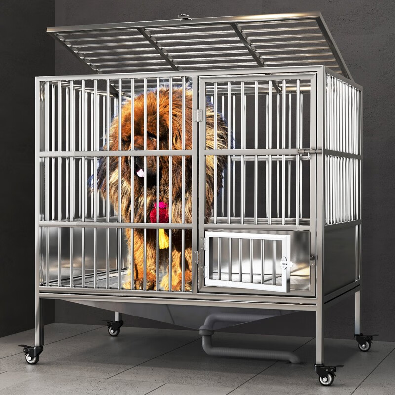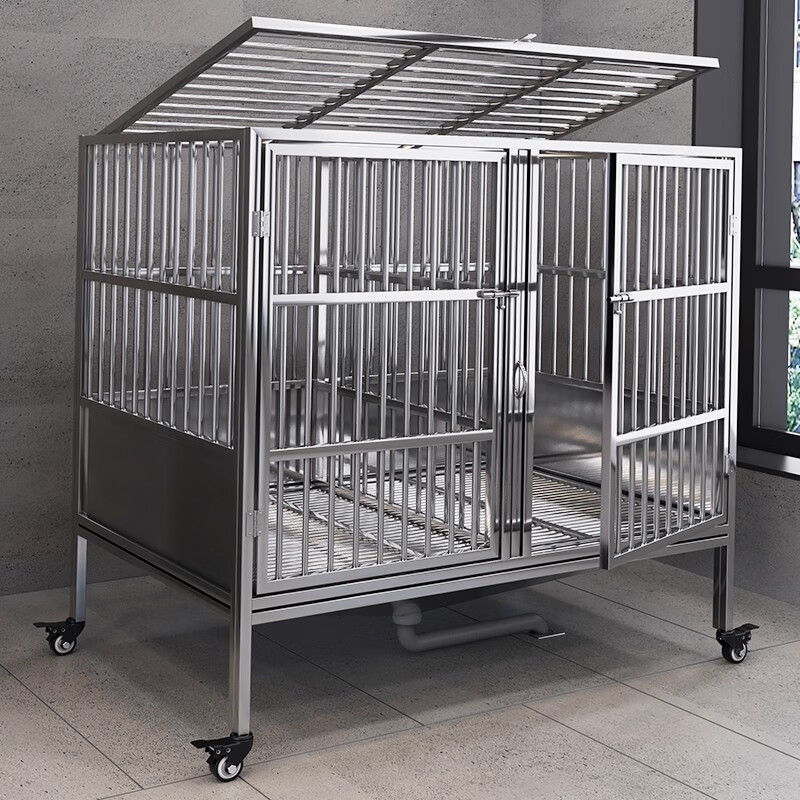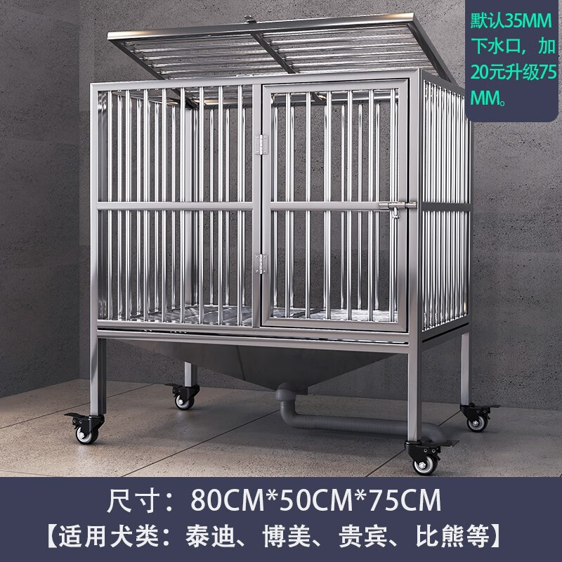 【直通下水道不锈钢笼子】金百特大型犬狗笼子带厕所不锈钢子母笼特大号小中型犬金毛拉布拉多漏斗托盘 小型犬-80*50*75CM20斤内 泰迪博美