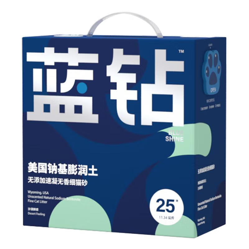 蓝钻猫砂无添加速凝细猫砂 绿标25磅/11.34kg细沙无香款 膨润土猫砂