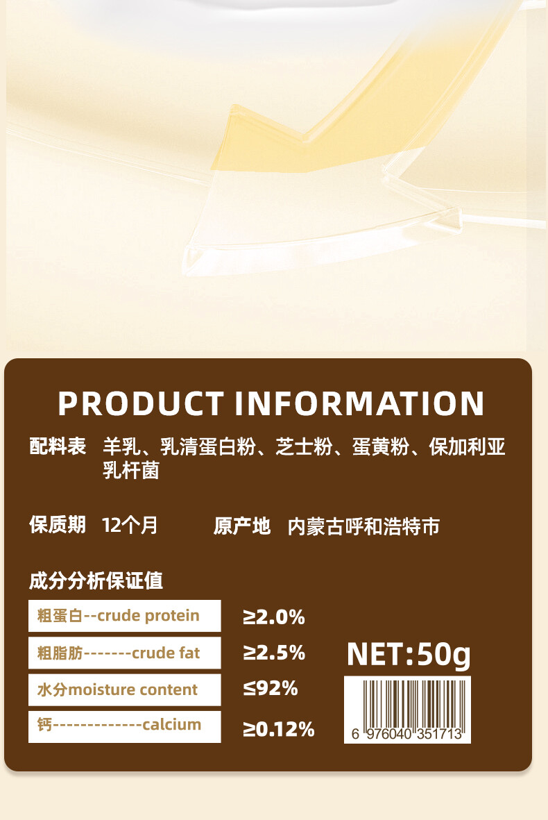 蒙贝 宠物零食酸奶(50g*10袋)