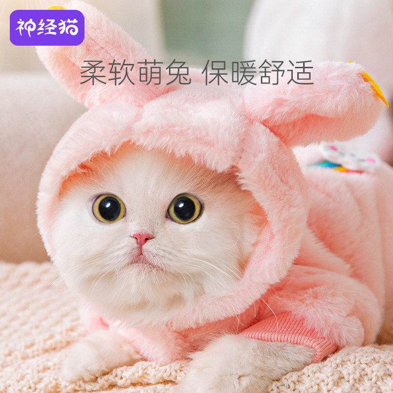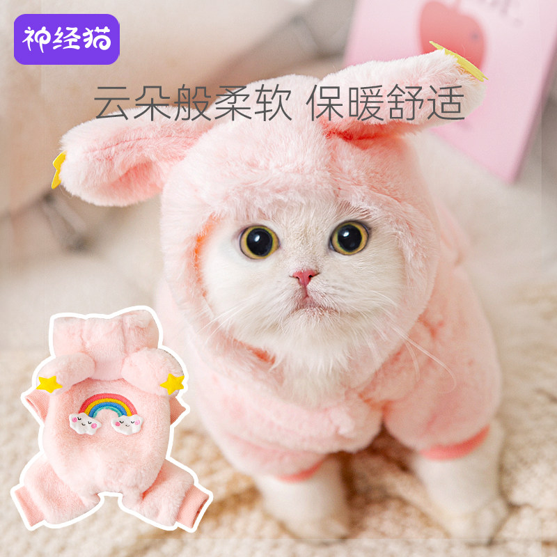 小猫咪衣服冬法兰绒云朵萌兔幼猫猫布偶猫蓝猫宠物服装防掉毛冬季