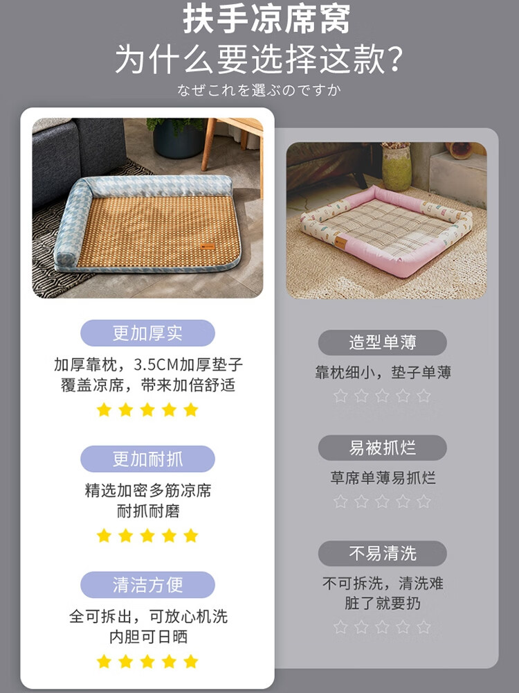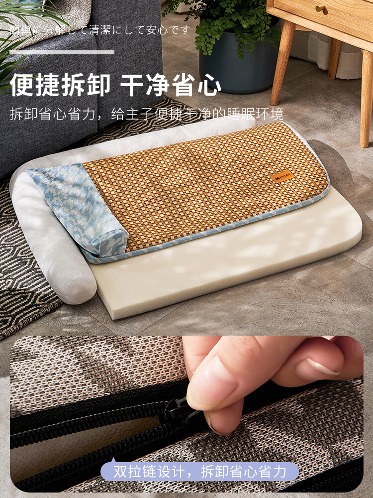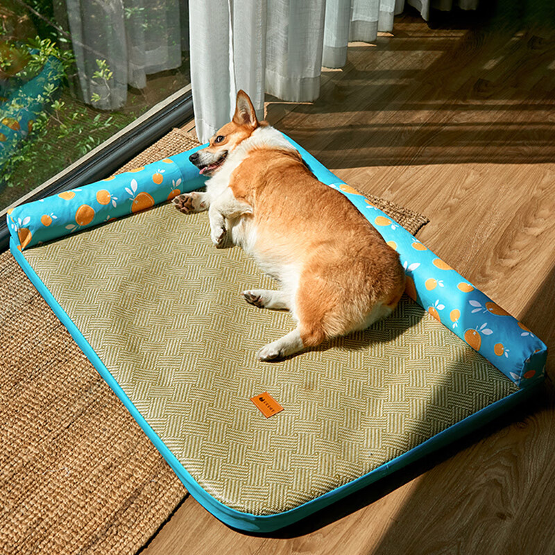 OIMG狗窝夏天四季通用可拆洗夏季凉席窝中小型犬狗床网红猫窝 夏天藤编凉席青橙全可拆洗 L码15斤内宠物-建议拍大一码宠