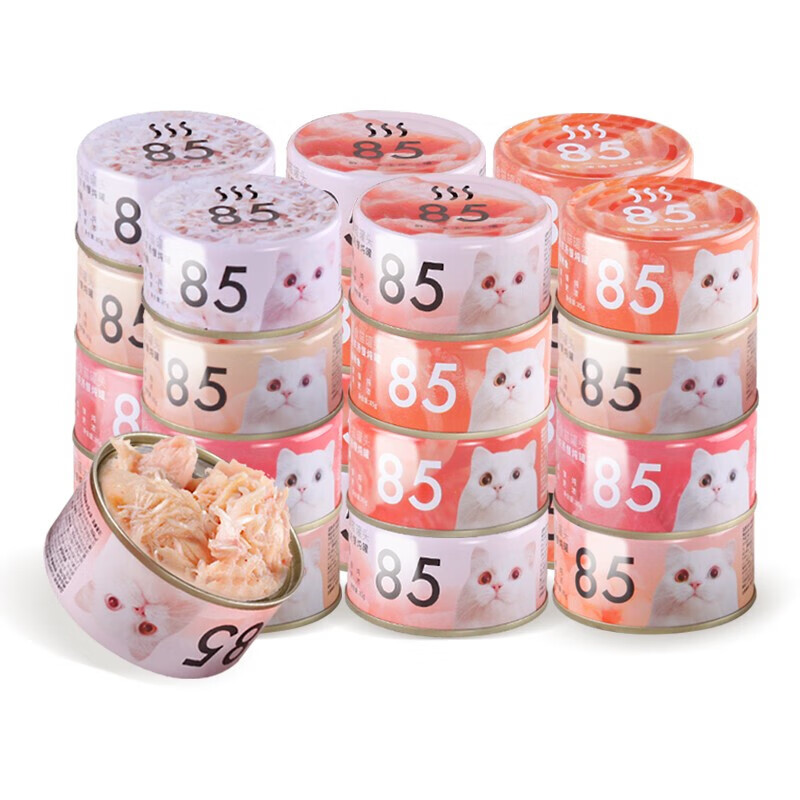尾巴生活猫罐头24罐鲜肉汤汁整箱猫咪罐头85度鸡肉蟹肉幼猫孕猫营养补水 混合口味 85g*24罐