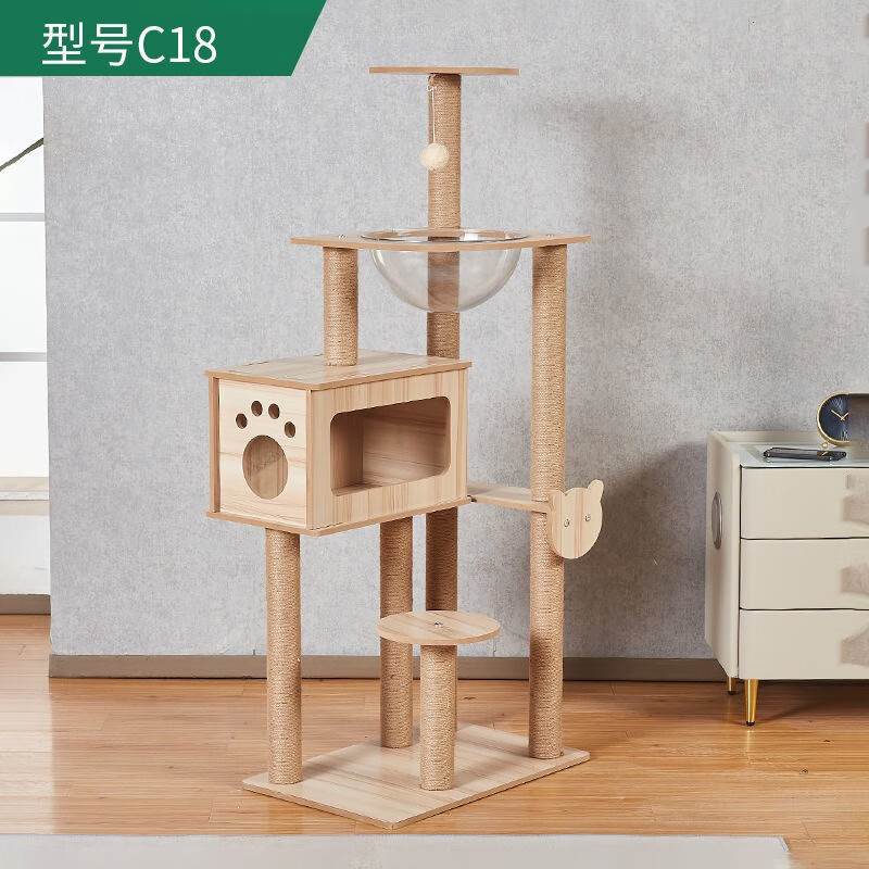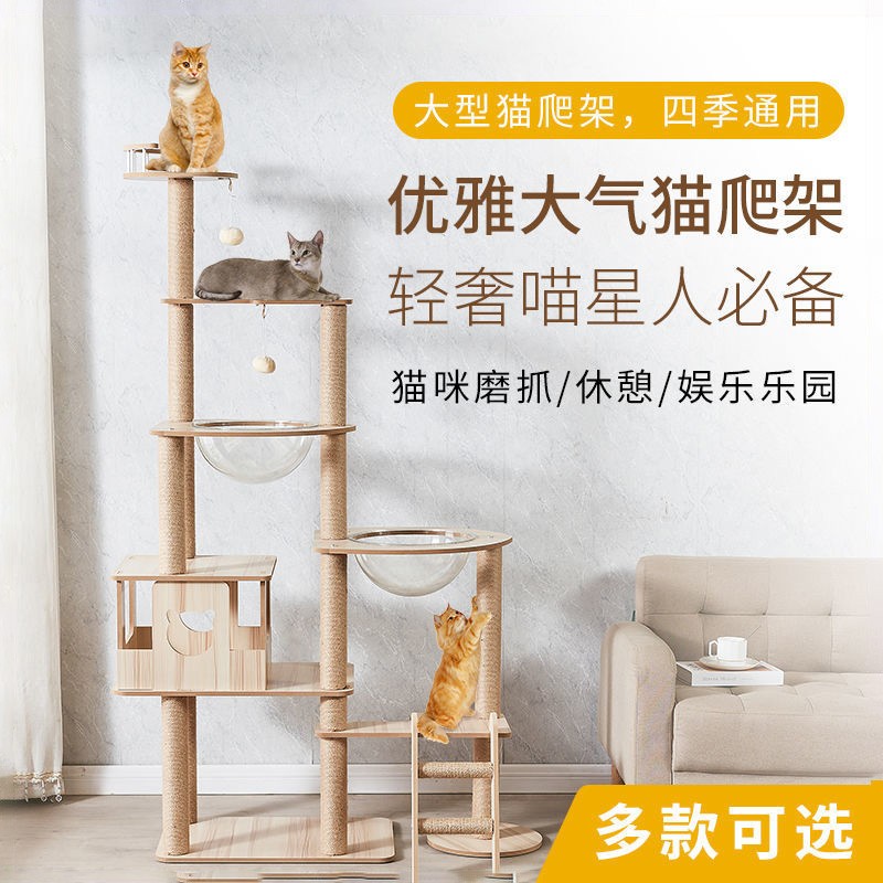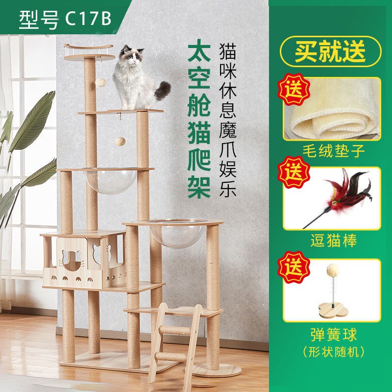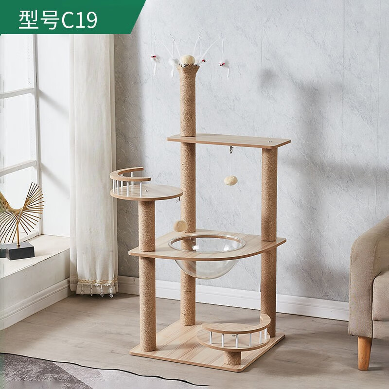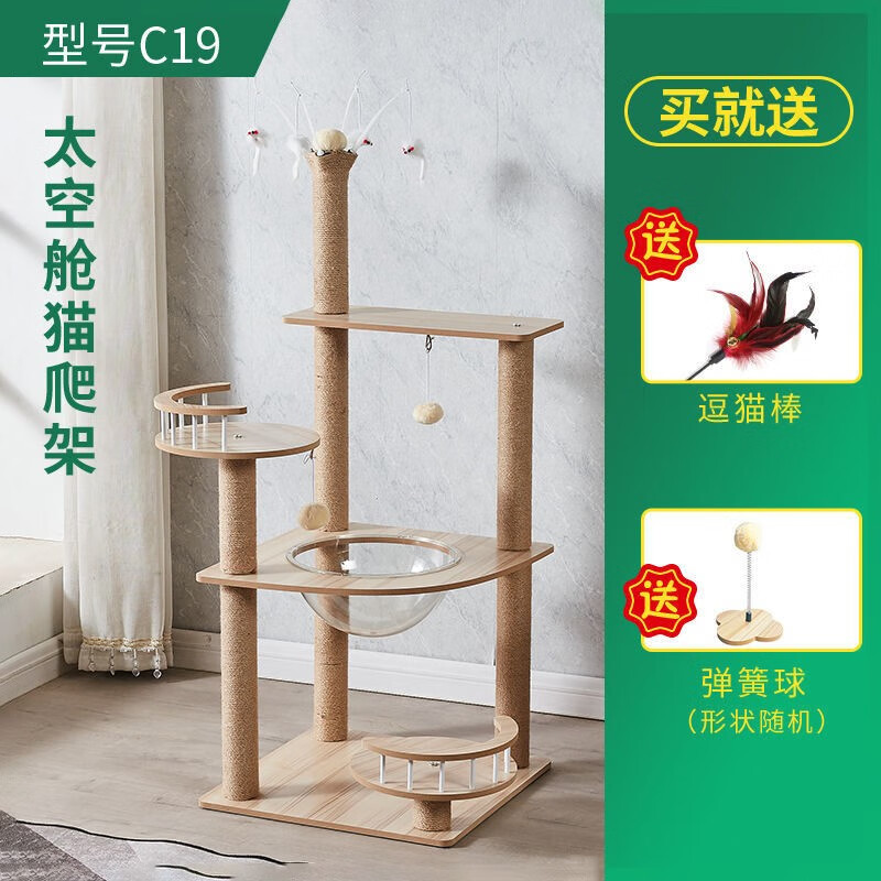 太空舱实木猫爬架大型豪华猫窝猫架子一体多层四季通用剑麻猫抓柱猫跳台猫玩具 C-19