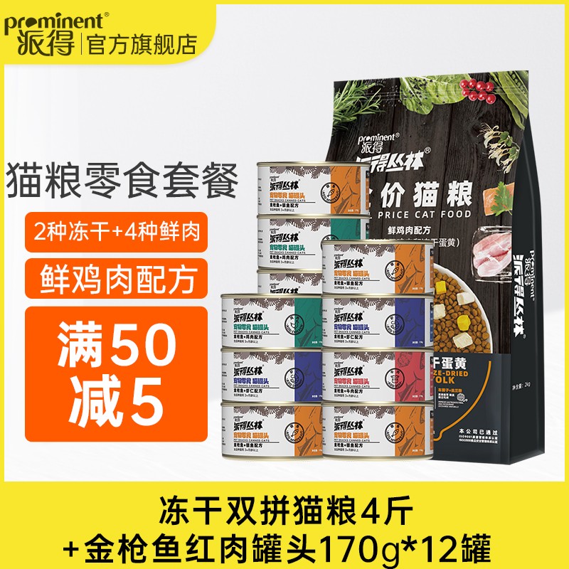派得猫粮 成猫幼猫冻干双拼全价无谷英短布偶猫粮 冻干双拼猫粮4斤 【金枪鱼红肉罐头170g*12】