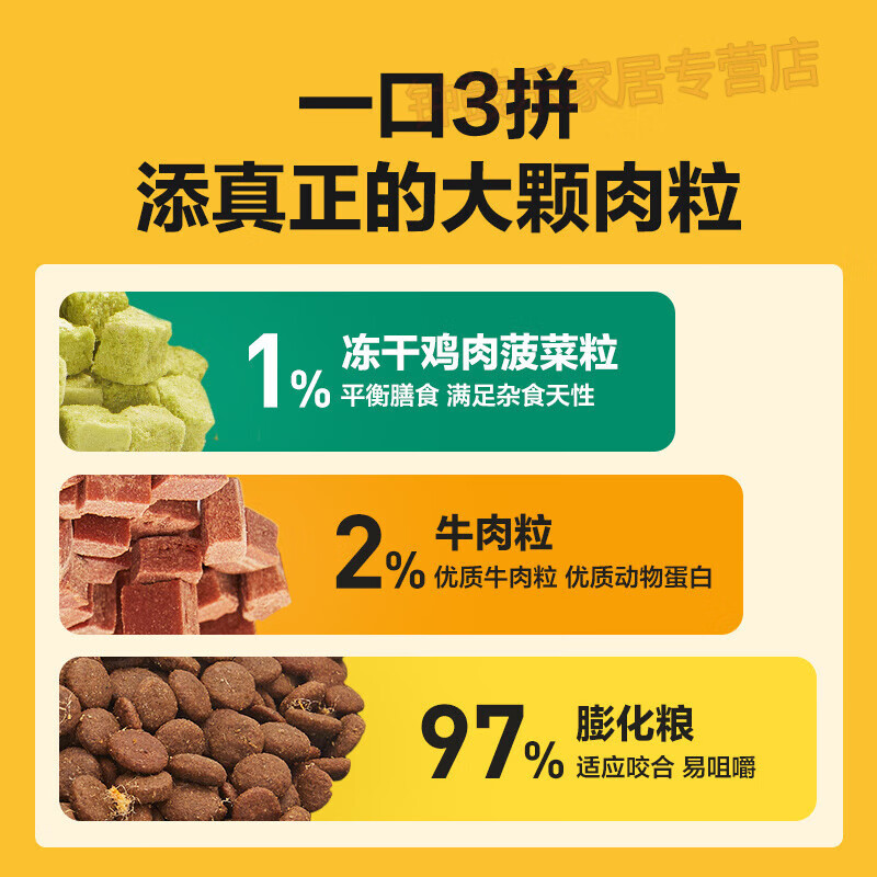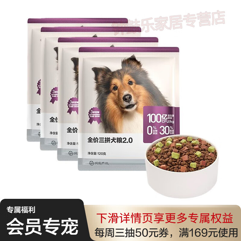 网易严选【U先试用】全价冻干三拼犬粮升级款试吃装4袋装狗粮480g 鲜鸡肉 肉蔬粒 牛肉 100亿CFU/k 480g