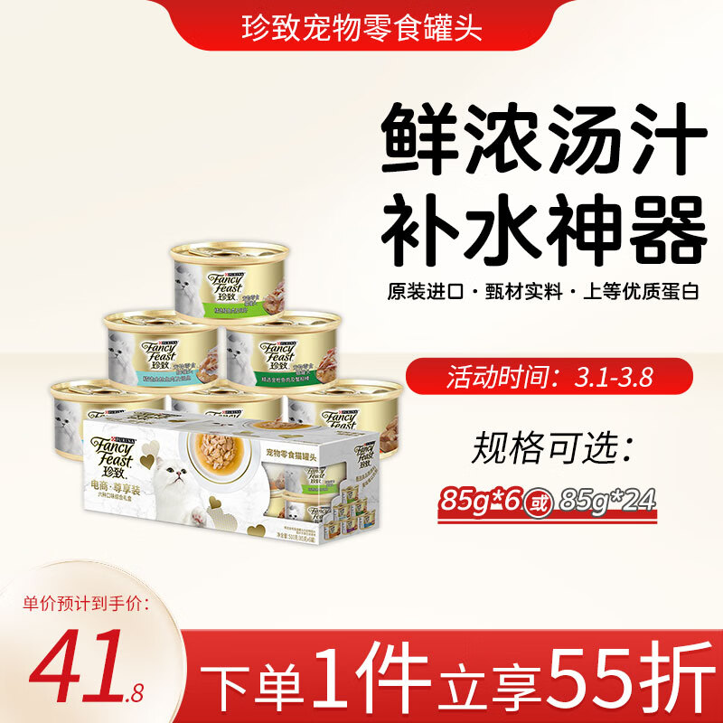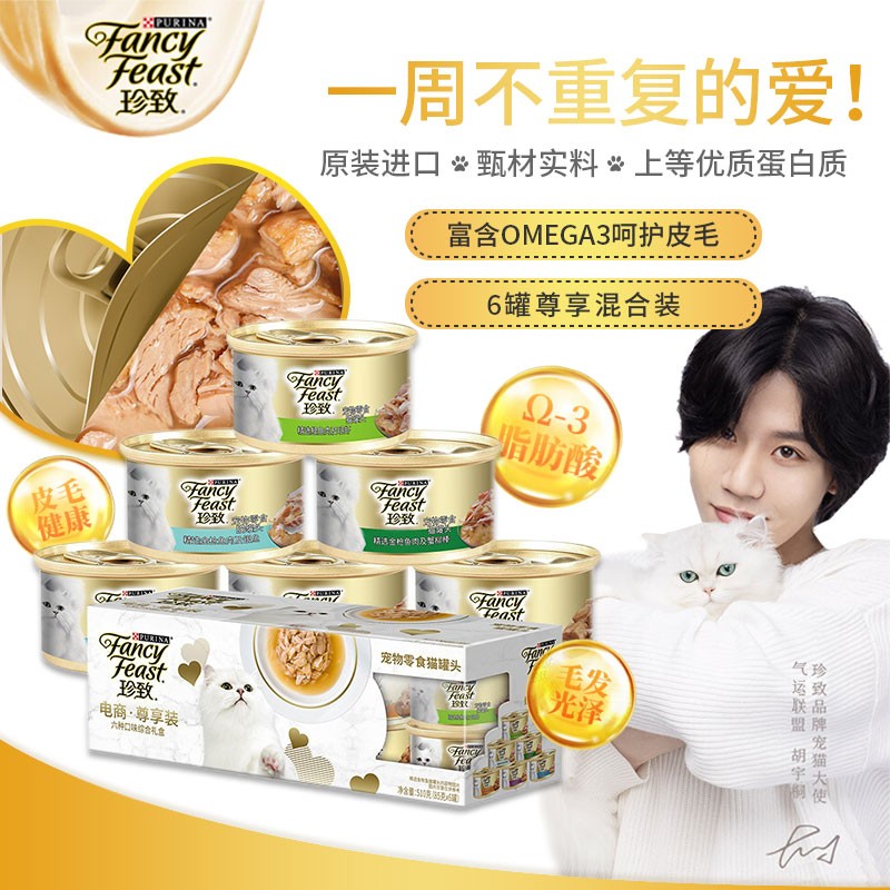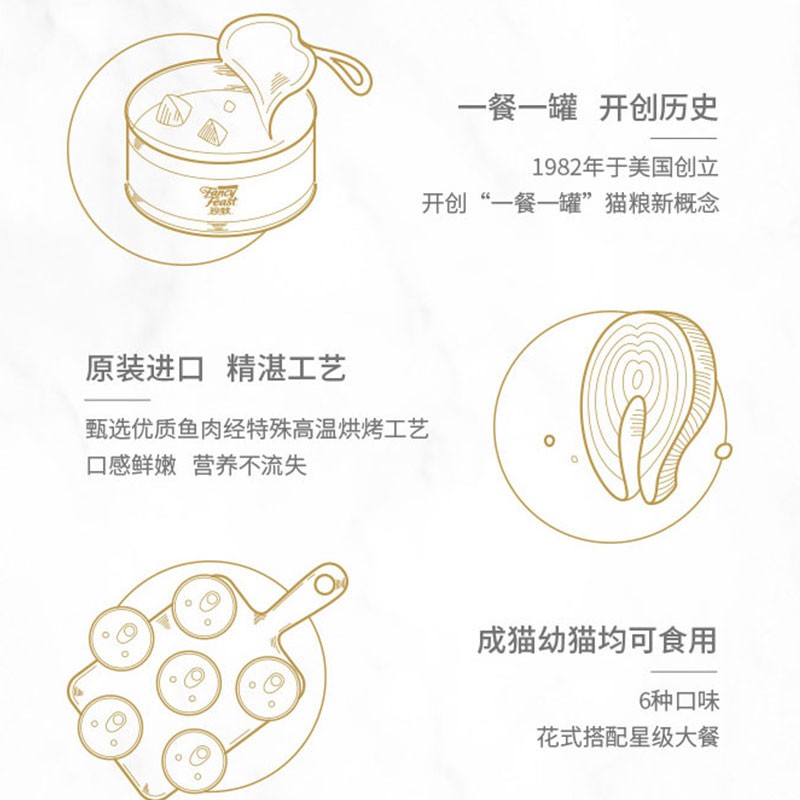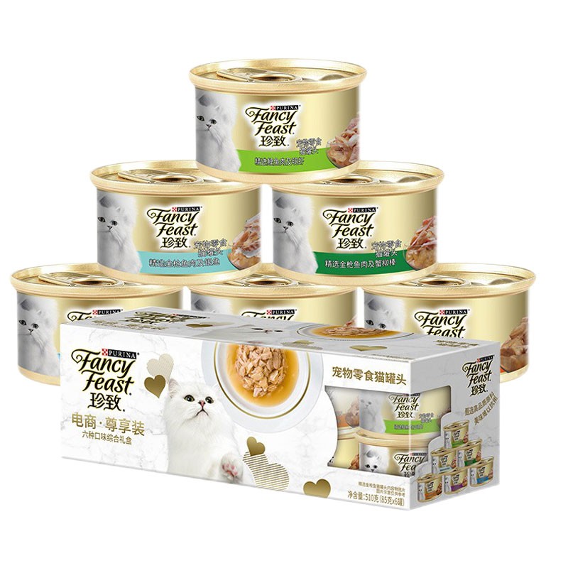 珍致(FancyFeast)猫咪零食罐头 进口成猫湿粮补水营养猫罐头猫零食 组合装6*85g【6种口味】