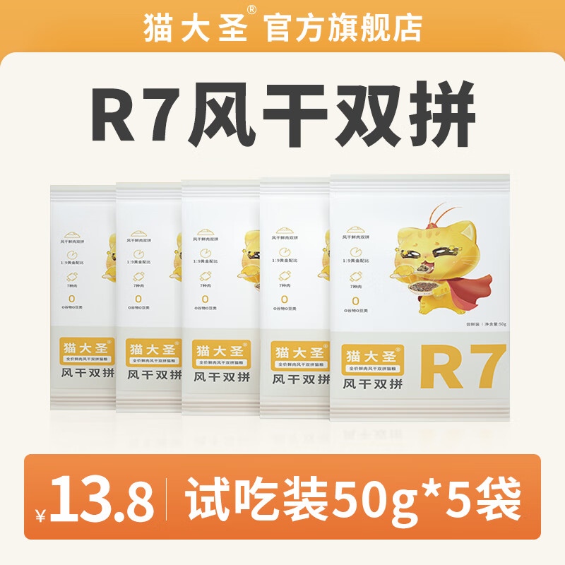 猫大圣S8秒换粮低温烘焙猫粮鲜肉无谷成猫幼猫全价秒换粮试吃装 R7风干双拼50g*5袋