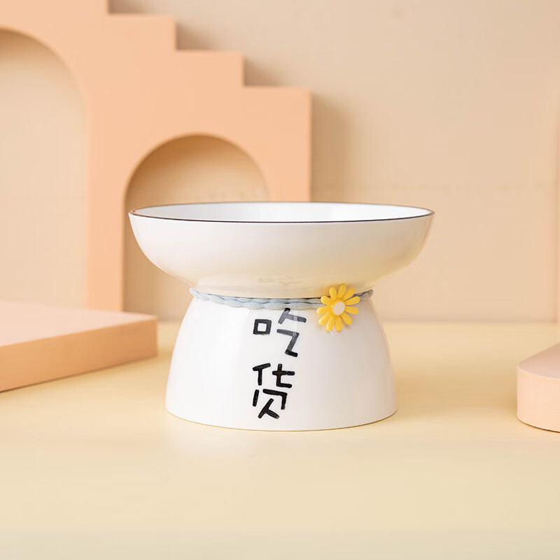 JHHUIYA高脚猫碗陶瓷防打翻饭斜口碗猫咪食盆喝水保护颈椎饮水宠物狗粮碗 平口吃货