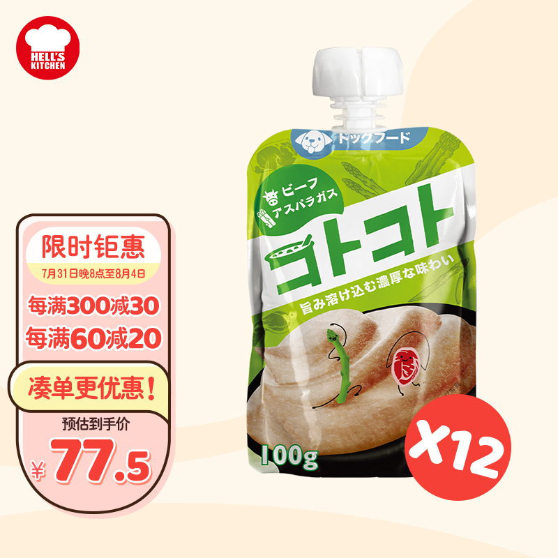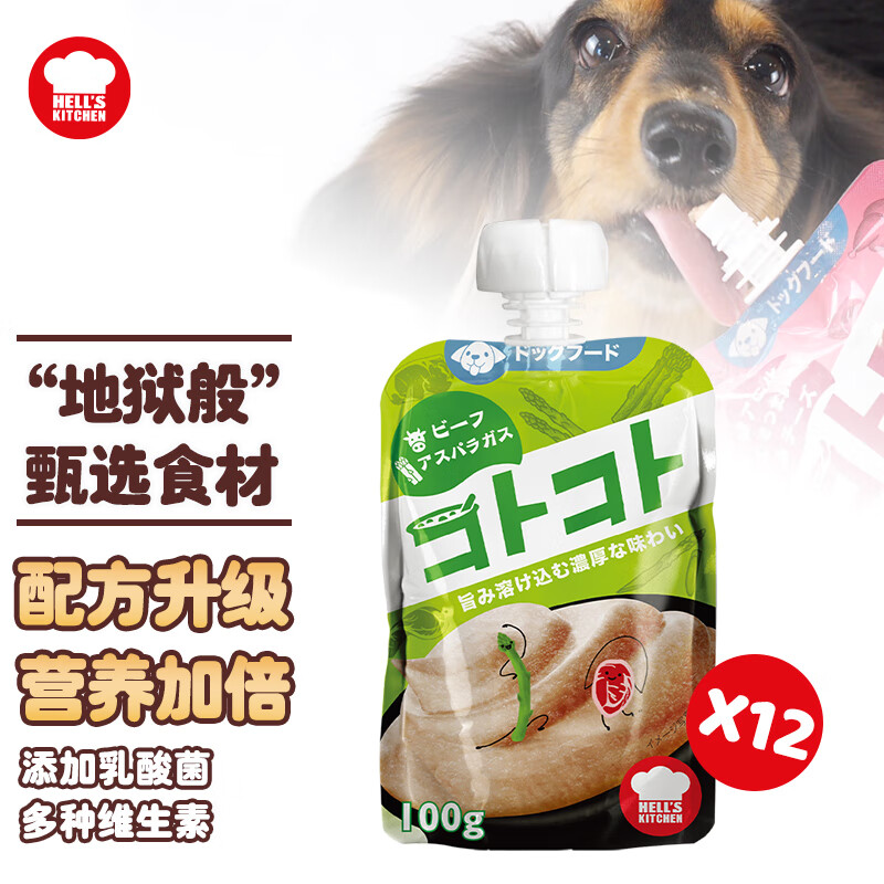 地狱厨房(Hell's Kitchen)成犬用经典咕噜酱牛肉芦笋味100g*12袋装