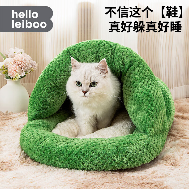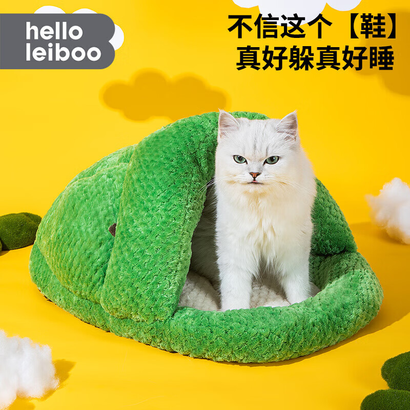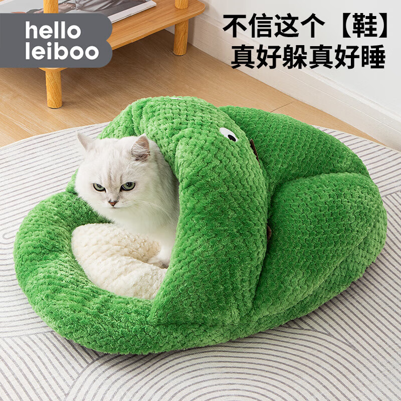 宠淘气猫窝四季通用猫咪躲避屋空调屋网红猫窝拖鞋PP棉小狗猫咪睡觉的窝 信你的”鞋“猫狗窝-软绿绿 L-大型