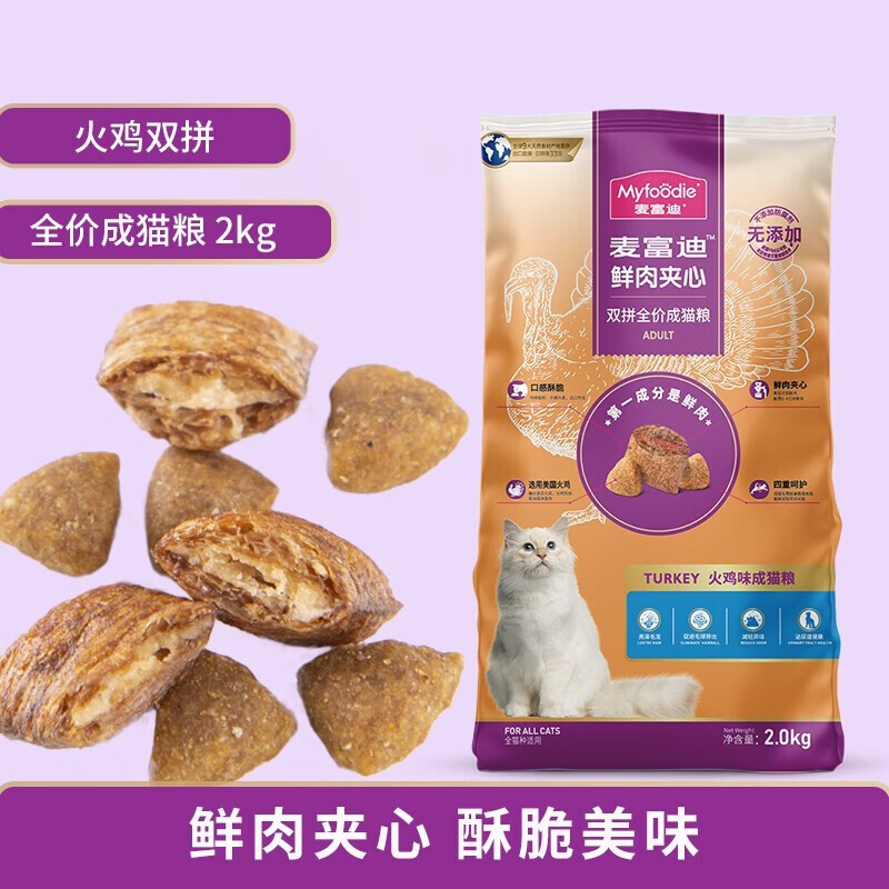 麦富迪(Myfoodie)麦富迪三文鱼火鸡鲜肉夹心猫粮成幼猫老年猫折耳英短美短全价粮通 三文鱼鲜肉夹心成猫粮2kg