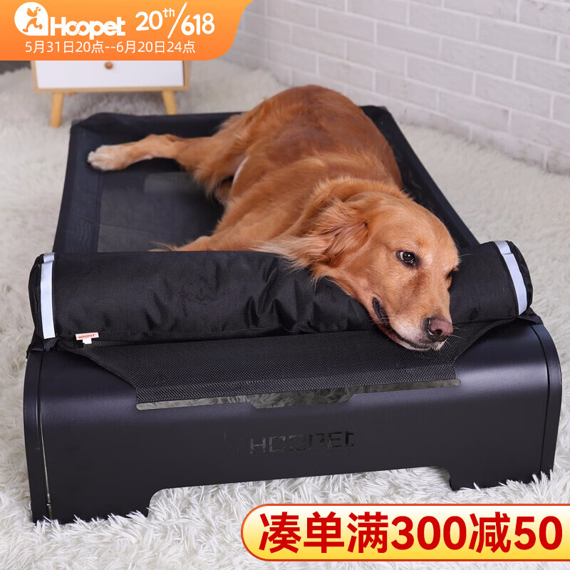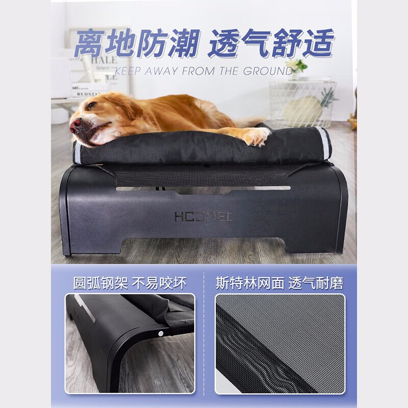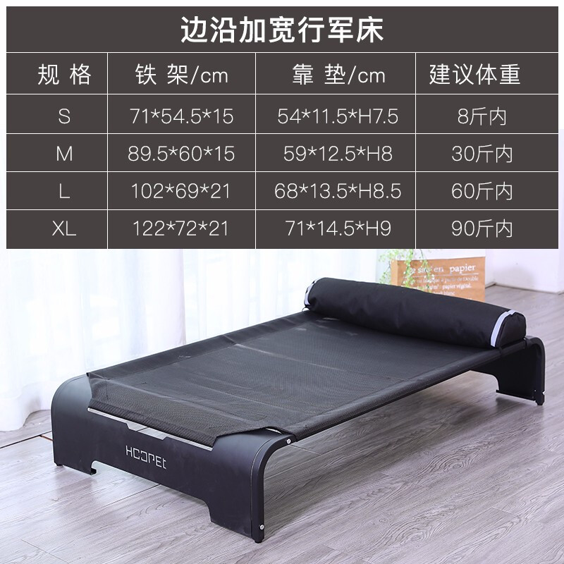 hoopet狗窝宠物行军床离地四季通用狗床夏季大型犬金毛拉布拉多用品耐咬 加宽边沿行军床 可拆卸靠枕(结实稳固) S-71*54*15(20斤内))