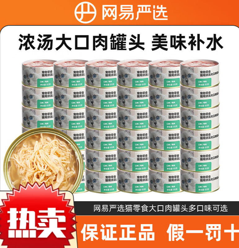 网易严选猫罐头浓汤大口肉罐头85g*24罐整箱装成猫湿粮猫咪零食罐 浓汤大口肉罐头-黄鳍金枪鱼24罐 0g以标注重量为准