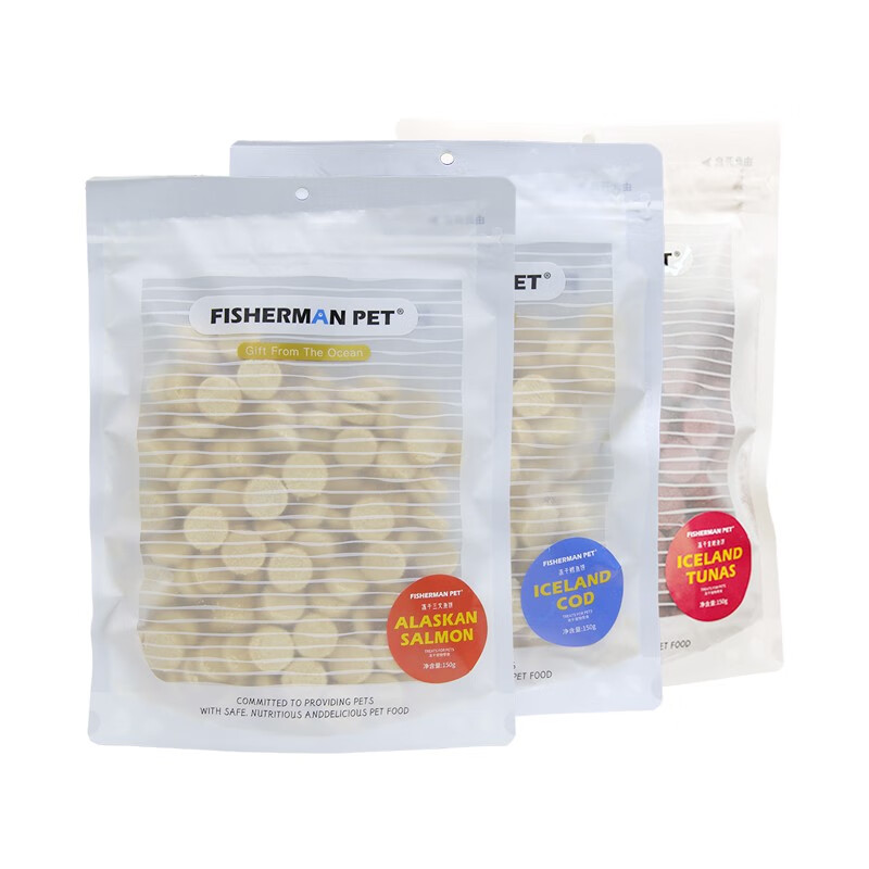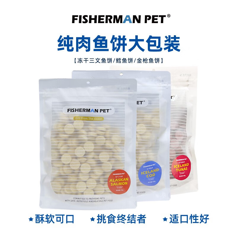 FISHERMANPET渔夫牧场冻干鱼饼大包猫咪狗狗零食 三文鱼鸡肉鱼饼 150g