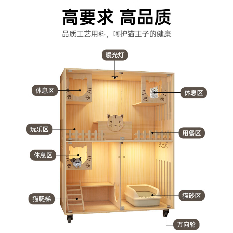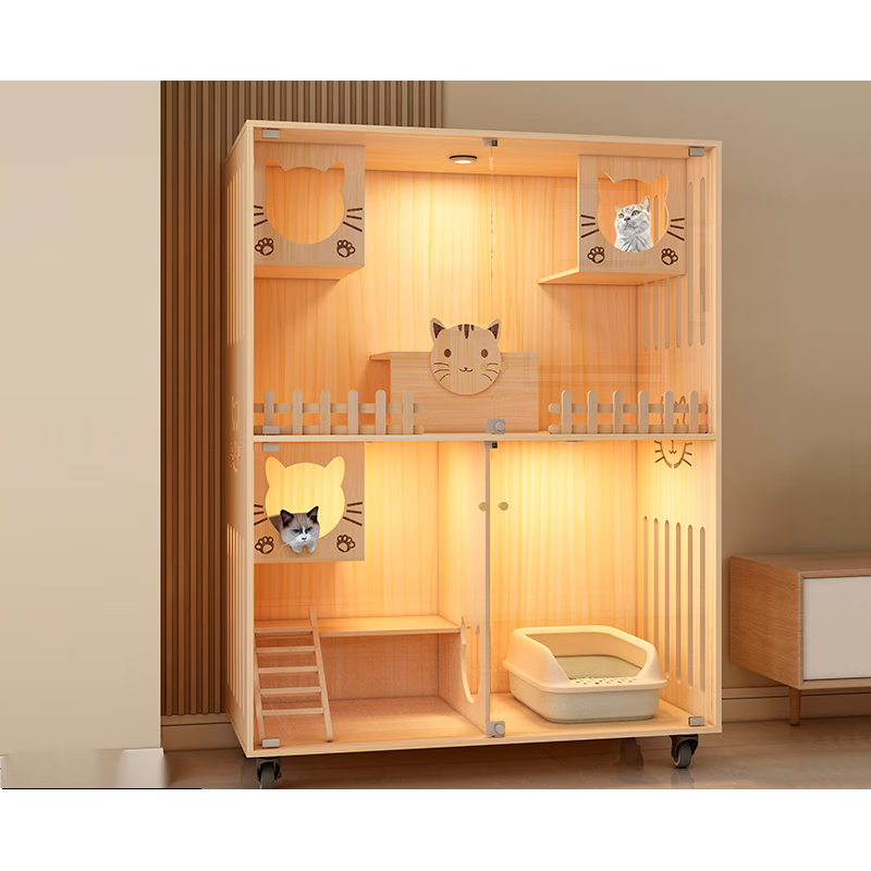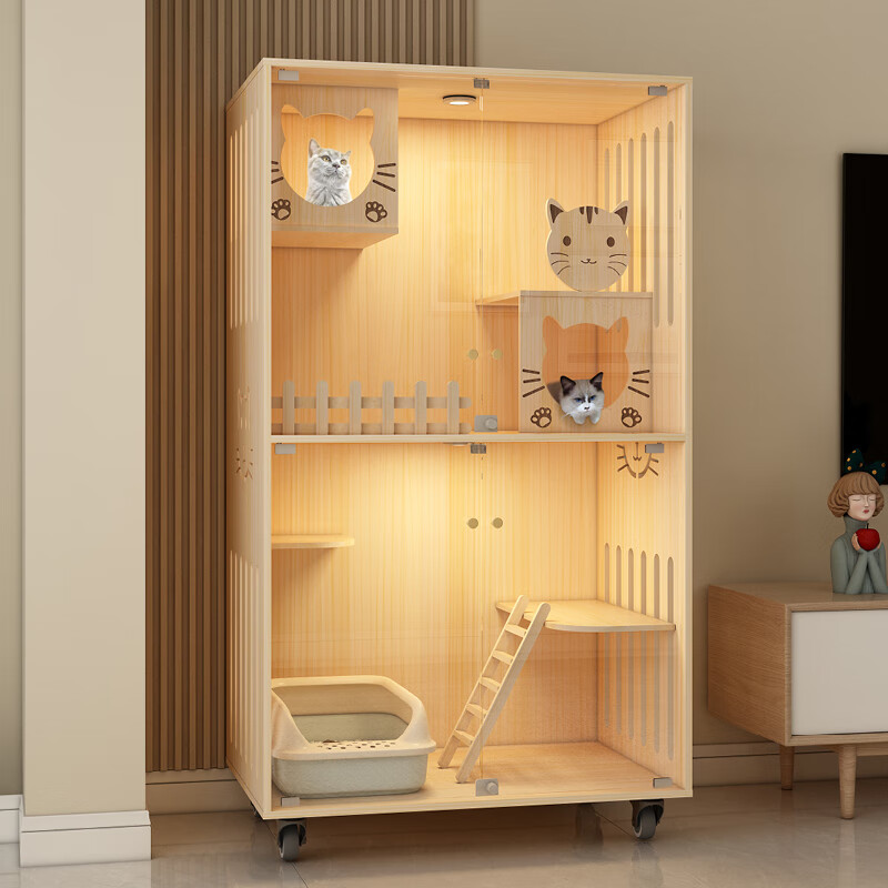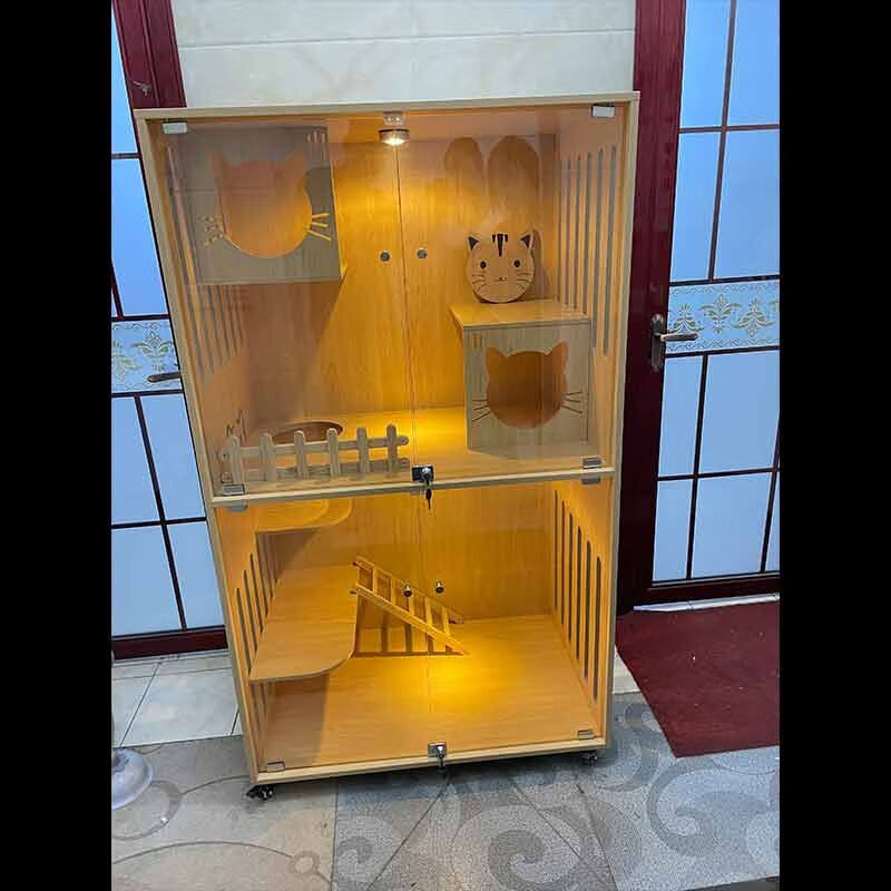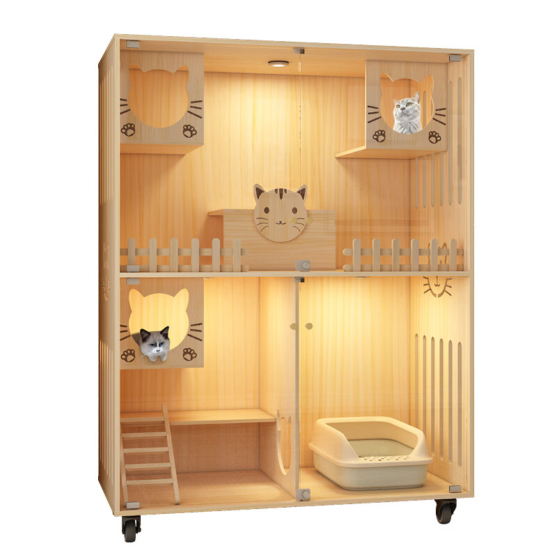 小米城堡猫屋 木质猫笼双猫 超大全景猫窝猫别墅家用木质豪华猫笼猫舍猫柜 M01-6060 送货入户自行安装