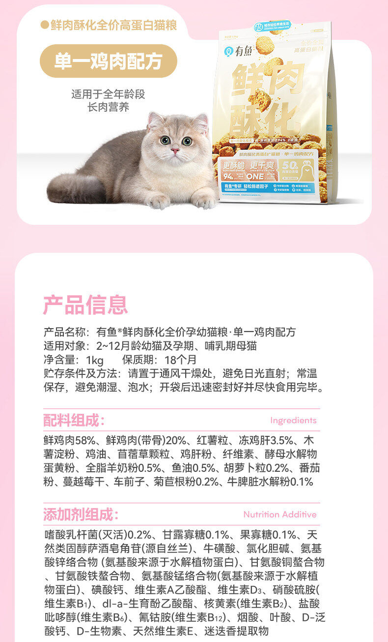 有鱼猫粮 鲜肉酥化全价孕幼猫粮135g/1kg