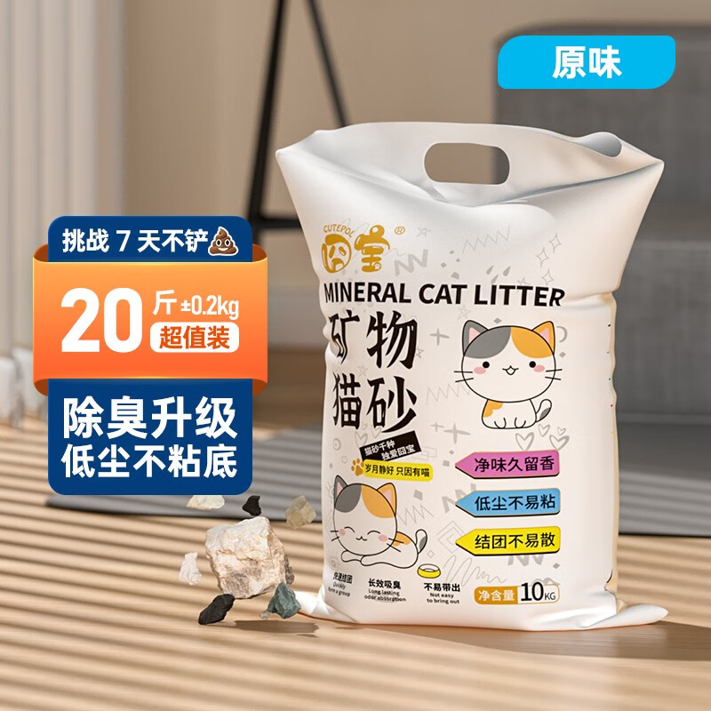 囧宝(CUTEPOL)钠基矿物猫砂原矿破碎除味除臭结团快大颗粒无粉尘吸水快猫咪用品 【几近无尘】破碎砂原味20斤