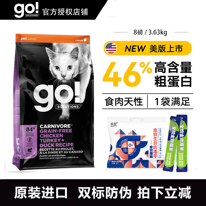 GO!SOLUTIONS猫粮 进口猫主粮go无谷九种肉猫粮 三文鱼全猫粮成猫幼猫营养食品 九种肉 8磅/3.63kg【现货】
