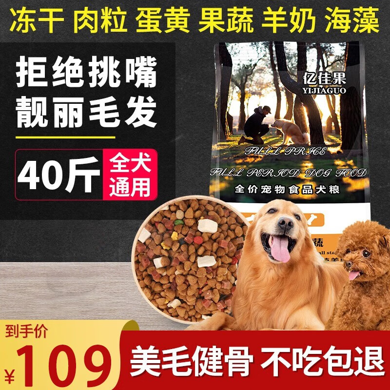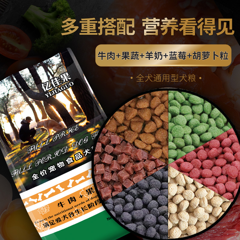 亿佳果狗粮通用型40斤装金毛拉布拉多泰迪法牛阿拉斯加大型成犬幼犬粮20 八拼【全新升级全营养配方】40斤
