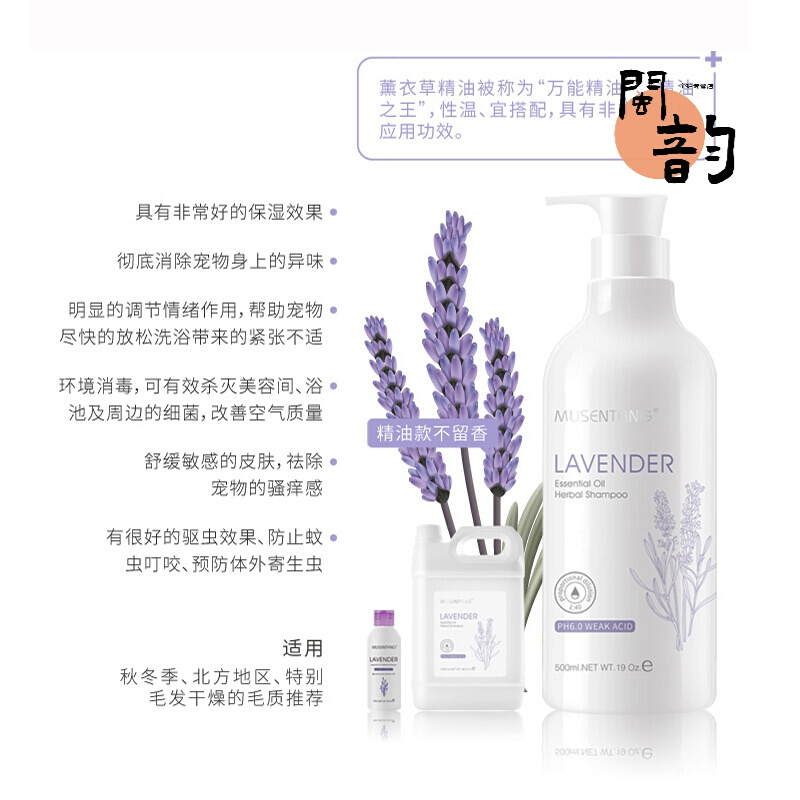 沐森堂沐浴露沐森堂宠物洗浴液宠物草本薰衣草佛手柑夏威夷果玫瑰浴液狗狗猫咪沐浴露弹力素 薰衣草精油草本香波500ML