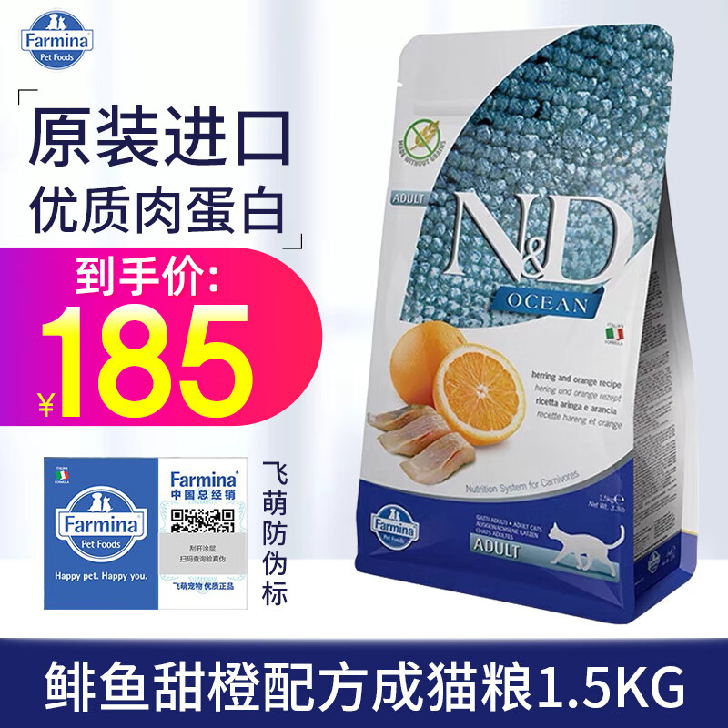 法米娜猫粮Farmina 法明娜意大利原装进口成猫幼猫猫粮宠物猫主粮 鲱鱼甜橙成猫粮 1.5kg