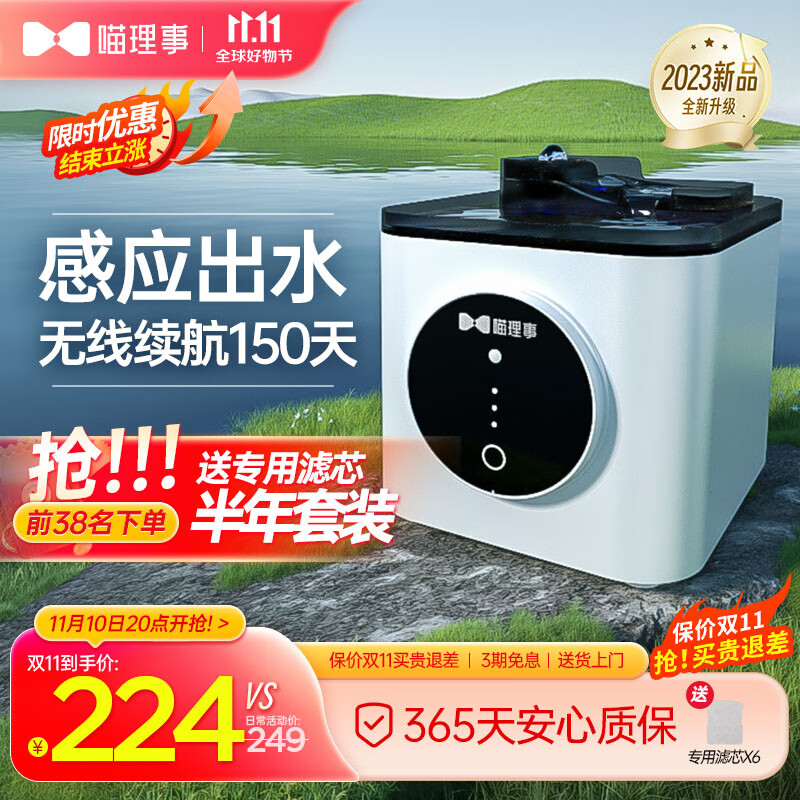 喵理事智能宠物猫咪饮水机自动感应无线流动喝水器过滤抑菌猫狗用不插电 智能饮水机5200mAh