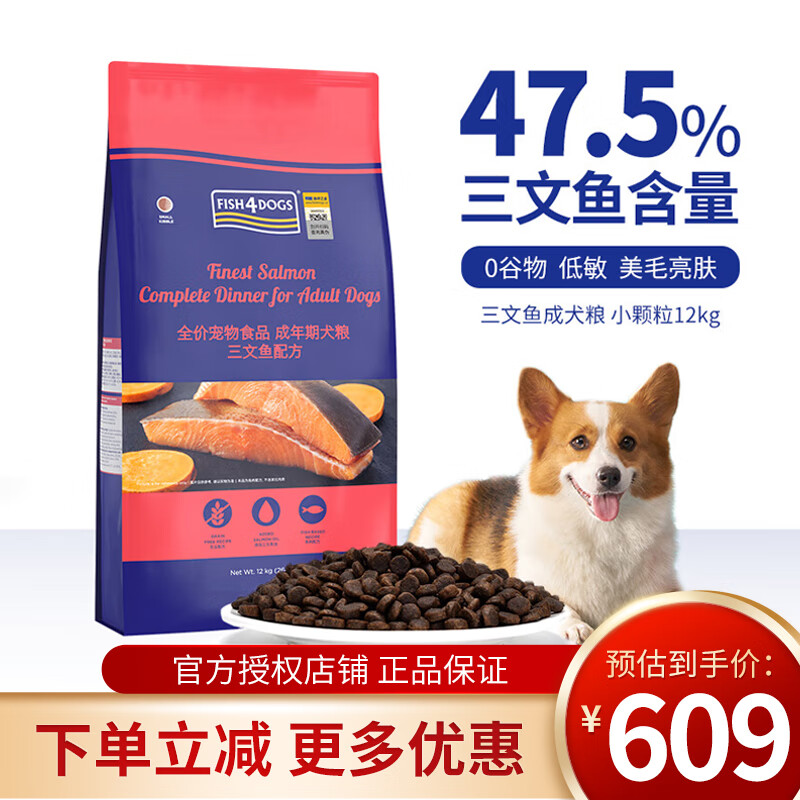 海洋之星(fish4dogs)狗粮无谷天然成犬粮美毛三文鱼配方泰迪比熊金毛萨摩耶狗粮通用型 【成犬粮12kg】三文鱼小颗粒
