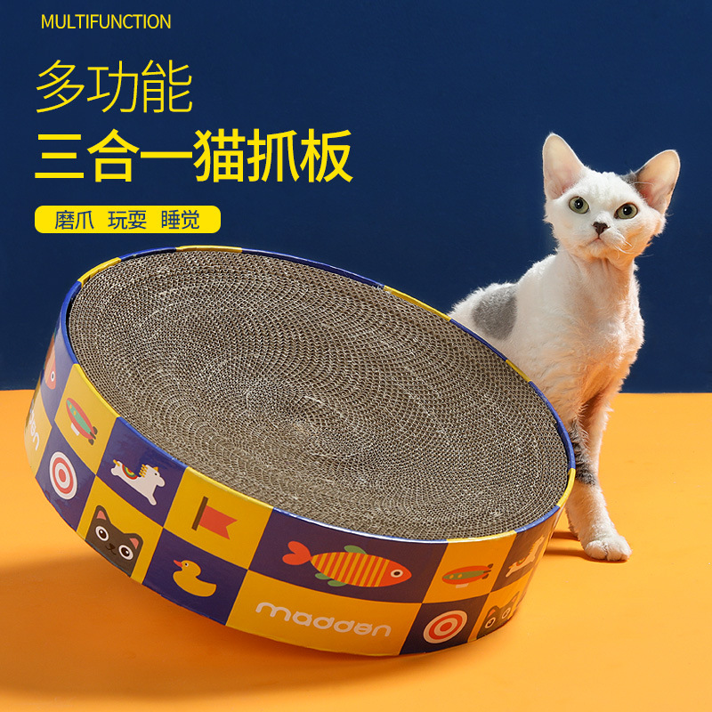 百宠日记猫抓板猫窝碗型大号瓦楞纸猫爪板防滑防潮猫玩具磨爪器猫咪用品 奇思妙想猫抓板【40*10】