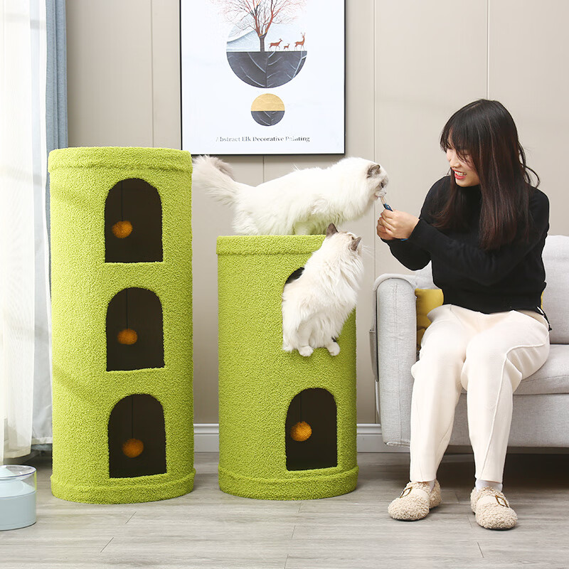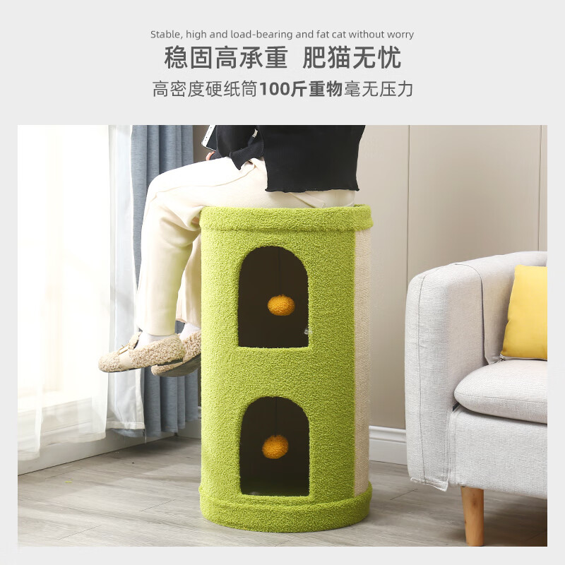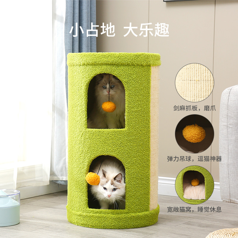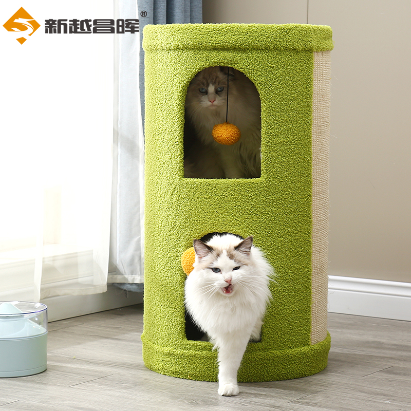 新越昌晖大型猫窝猫爬架宠物猫咪玩具 耐磨猫抓柱猫咪跳台立式猫架子高约77cm 双窝树洞款XY1068