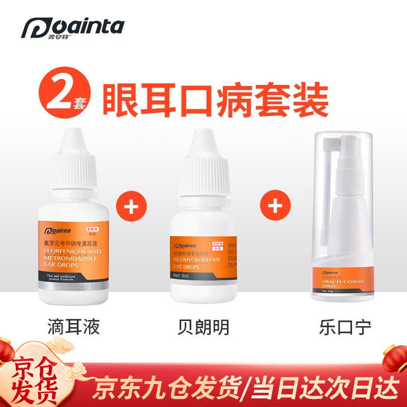 普安特宠物狗狗猫咪耳螨耳炎真菌滴耳药耳臭耳痒化脓红肿瘙痒洗耳液清洁耳水洁滴耳液渡尔舒 渡尔舒 贝朗明 乐口宁/2套