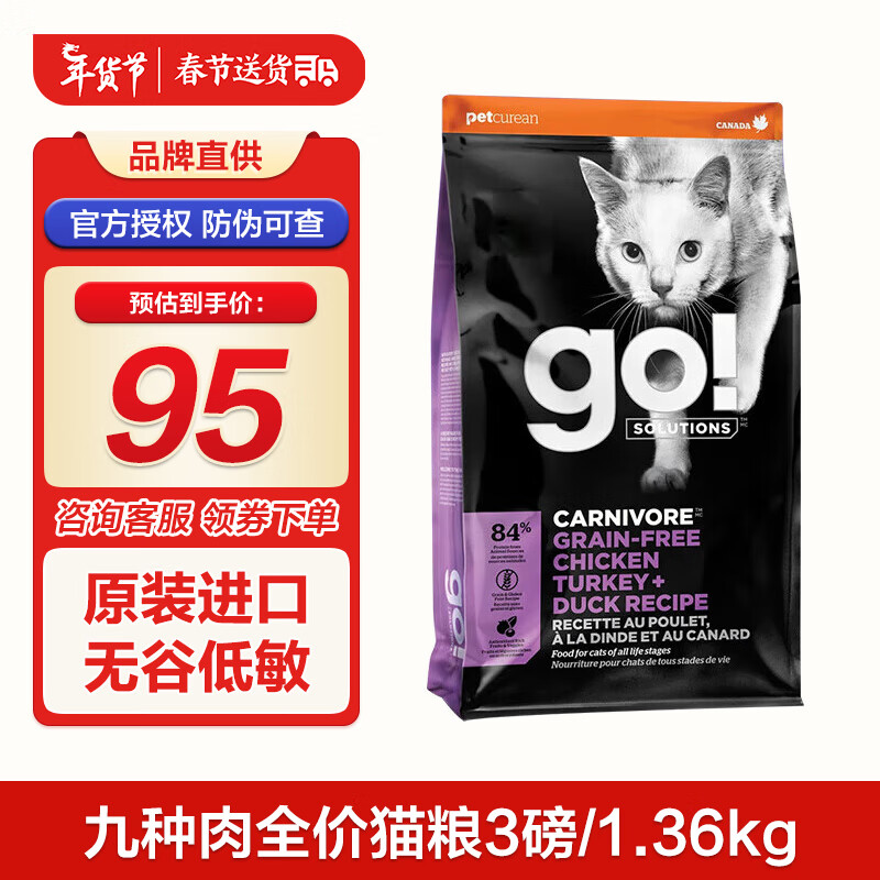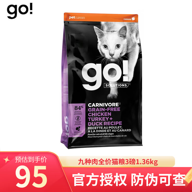 GO!SOLUTIONS原装进口go猫粮九种肉 无谷低敏高蛋白发腮成猫幼猫全价猫粮 九种肉3磅1.36kg-24.6