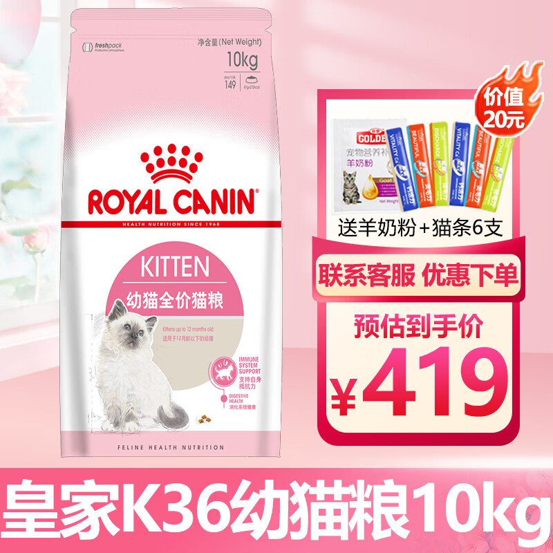 皇家(ROYAL CANIN)猫粮猫奶糕全价粮 1-4月龄 幼猫猫粮 怀孕及哺乳期母猫支持抵抗力 K36 幼猫粮(4-12月龄)10kg