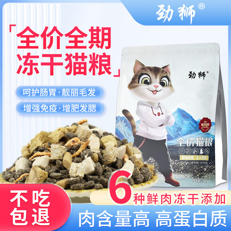 劲狮鲜肉六拼冻干猫粮全阶段全猫种通用型低脂高蛋白呵护肠胃10斤装猫 10斤装 全阶段