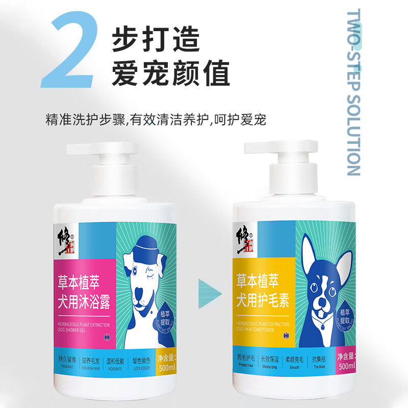 修正 狗狗护毛素宠物香波浴液 狗洗澡清洁用品美毛护毛除臭杀螨泰迪金毛拉布拉多柯基边牧犬通用500ml