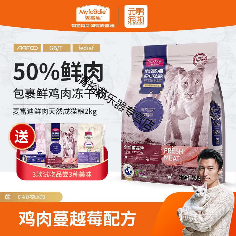 麦富迪无谷猫粮 成猫粮50%鲜肉英短蓝猫全种猫通用 鸡肉蔓越莓配方2kg