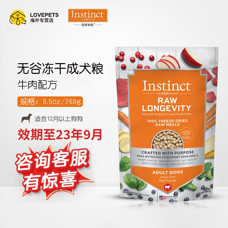 INSTINCT生鲜本能百利冻干犬粮冻干主食系列进口成年犬主粮 冻干主食 牛肉鳕鱼成犬粮 269g