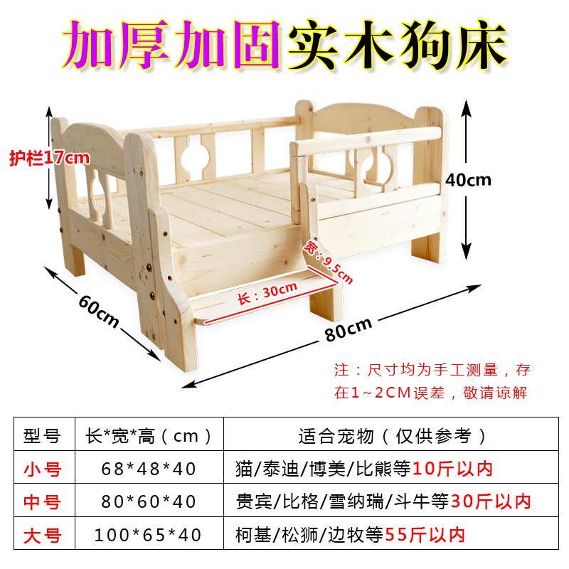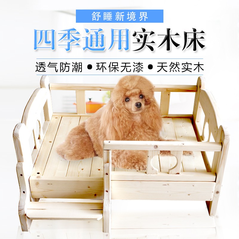 贝尼宠 狗床实木宠物床狗窝猫床泰迪床金毛床比熊床二哈床萨摩耶狗床 实木裸床 中号80x60x40cm30斤内