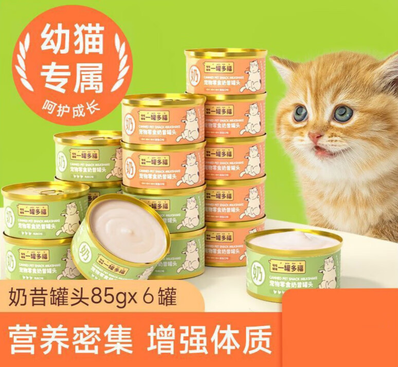 鱼七秒幼猫奶糕85g猫罐头主零食营养增肥湿粮猫咪零食整箱慕斯奶昔 鸡肉味奶昔85g*6罐