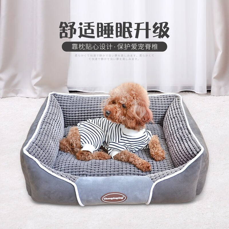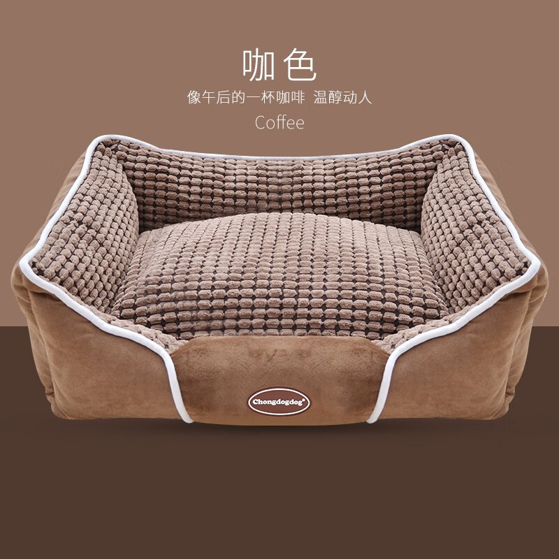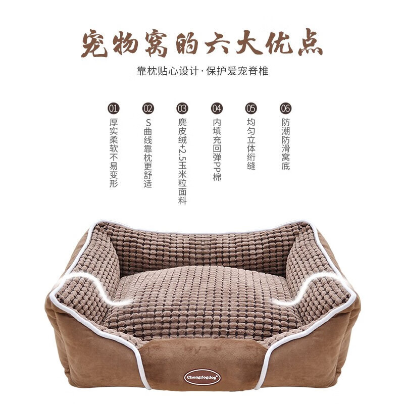 Chongdogdog 狗窝宠物垫子小型中型犬秋季冬季保暖大型犬窝泰迪金毛狗窝 咖啡色-四季 全拆洗 S:50*40*18cm(10斤内)