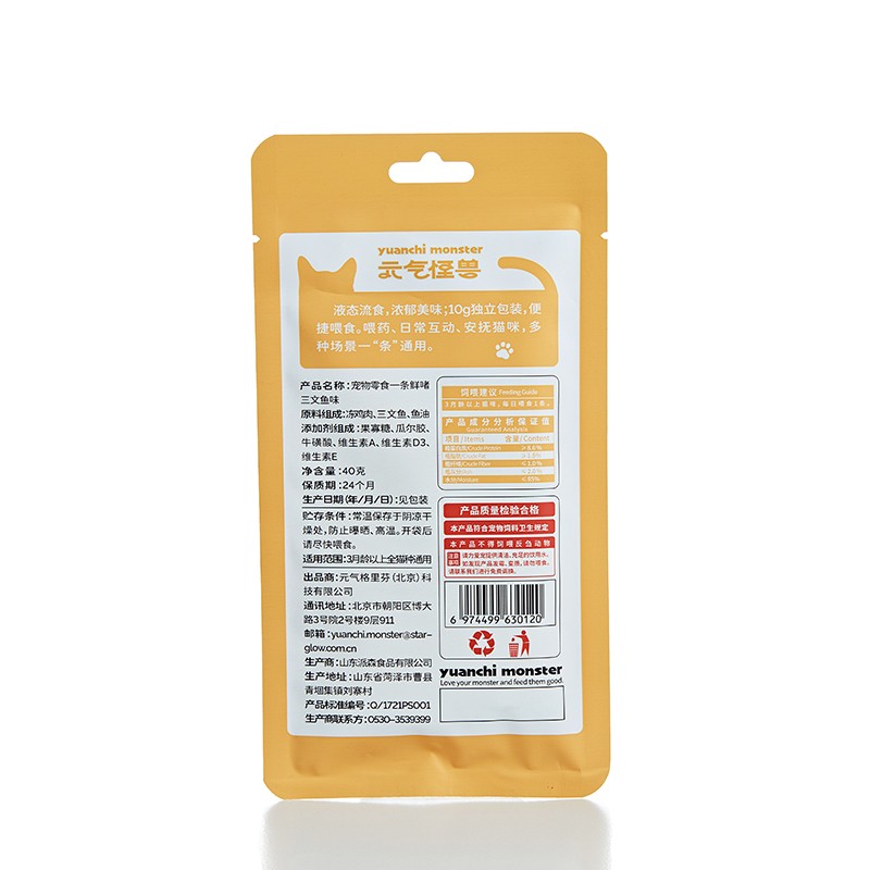 元气怪兽 猫零食猫条幼猫成猫营养猫咪猫湿粮三文鱼味320g(40g*8袋)
